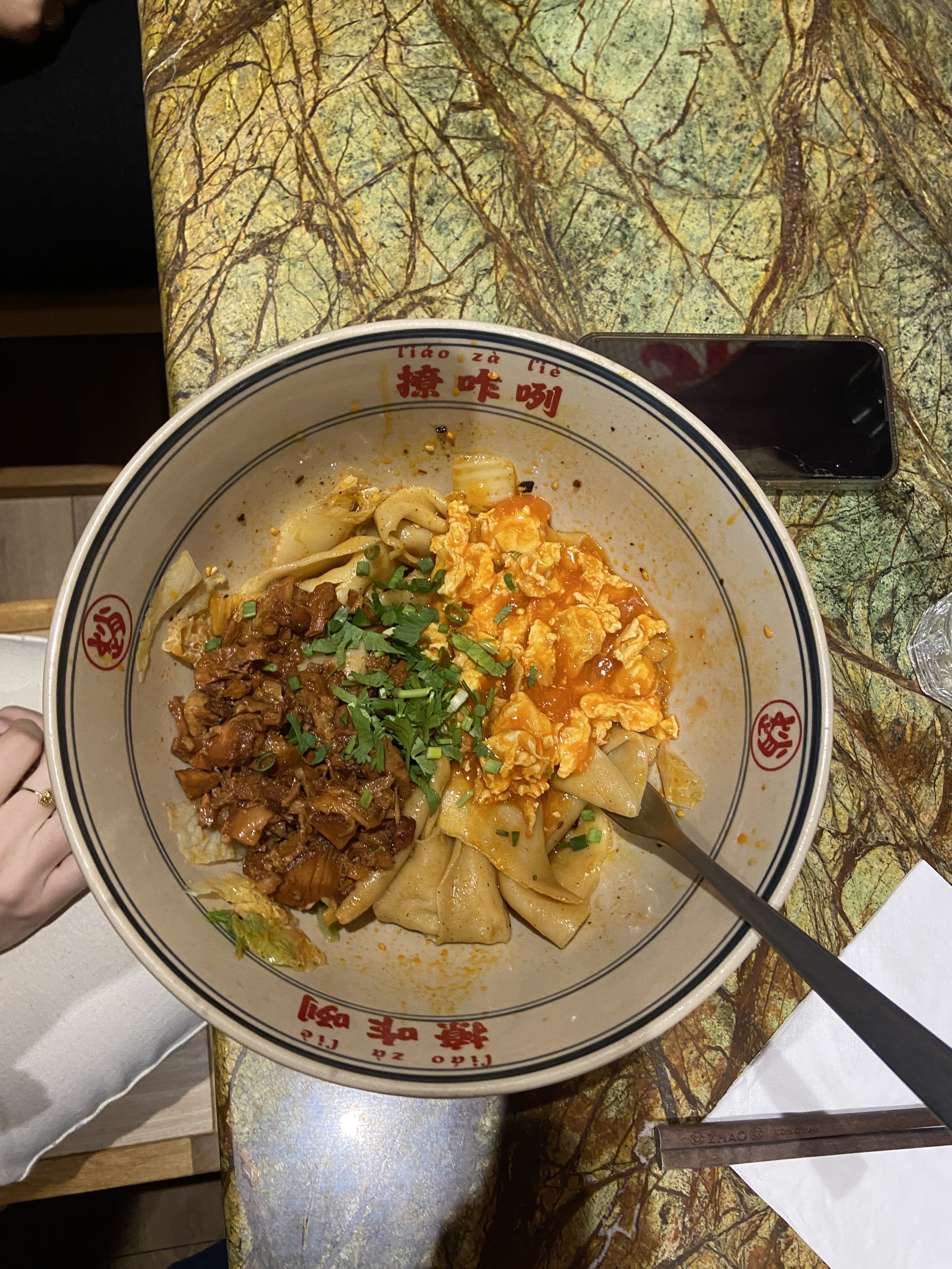 Je recommande, nous sommes allées à l’ouverture. Les nouilles biangbiang à la tomate et bœuf étaient délicieuses, ainsi que les raviolis au poulet frit. 😋