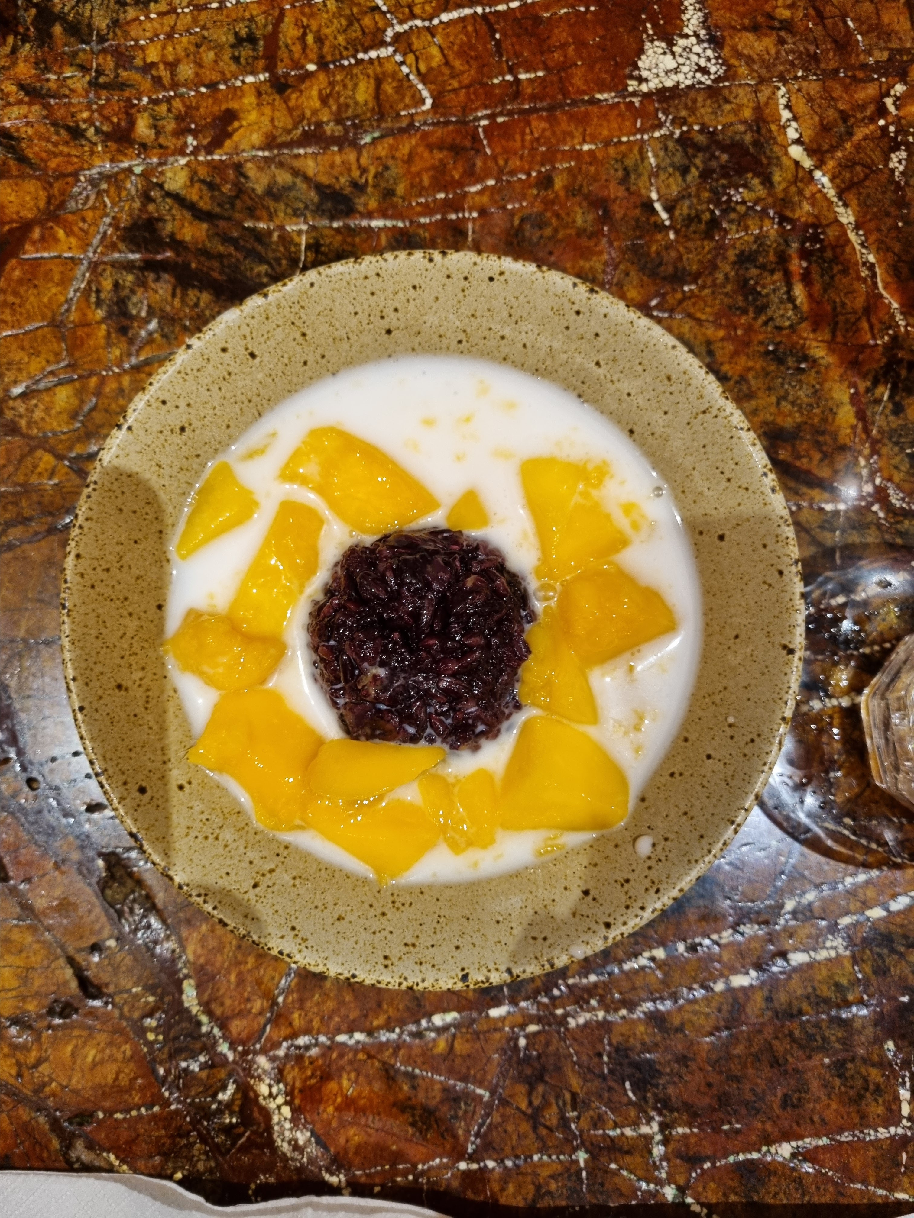 Un restaurant chinois : on peut y trouver des pâtes froides à la crème sésame, super pendant l'été, car plat froid mais goûteux👌 Un peu déçue par le dessert à la mangue 🥭 : morceaux trop gros et le riz était noyé dans la crème coco... Ça manquait de finesse.