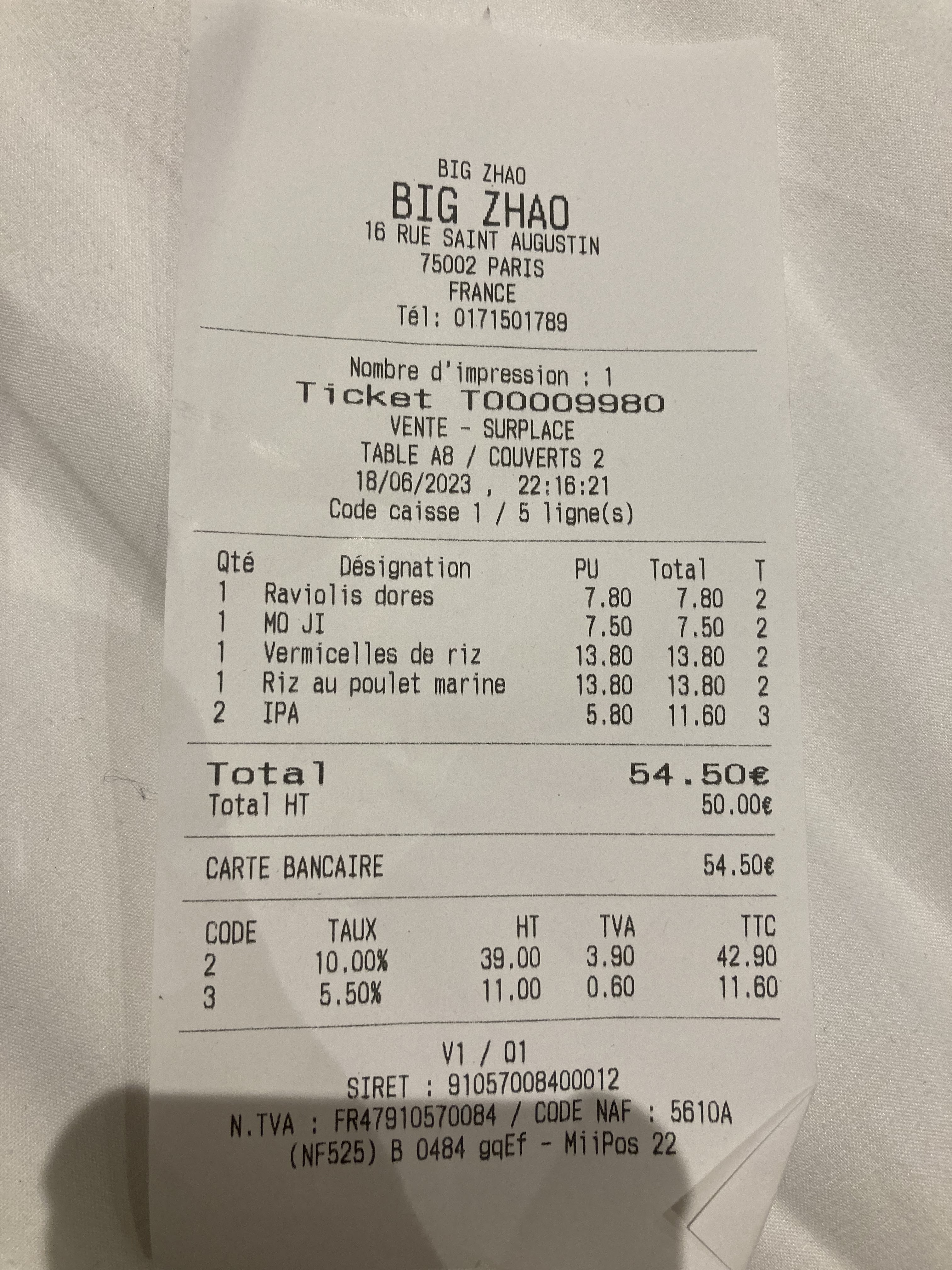 Un superbe décor, un plus pour la vaisselle sigillée Zhao, des serveurs réactifs malgré le monde et une cuisine au rendez vous. A essayer sur Paris.