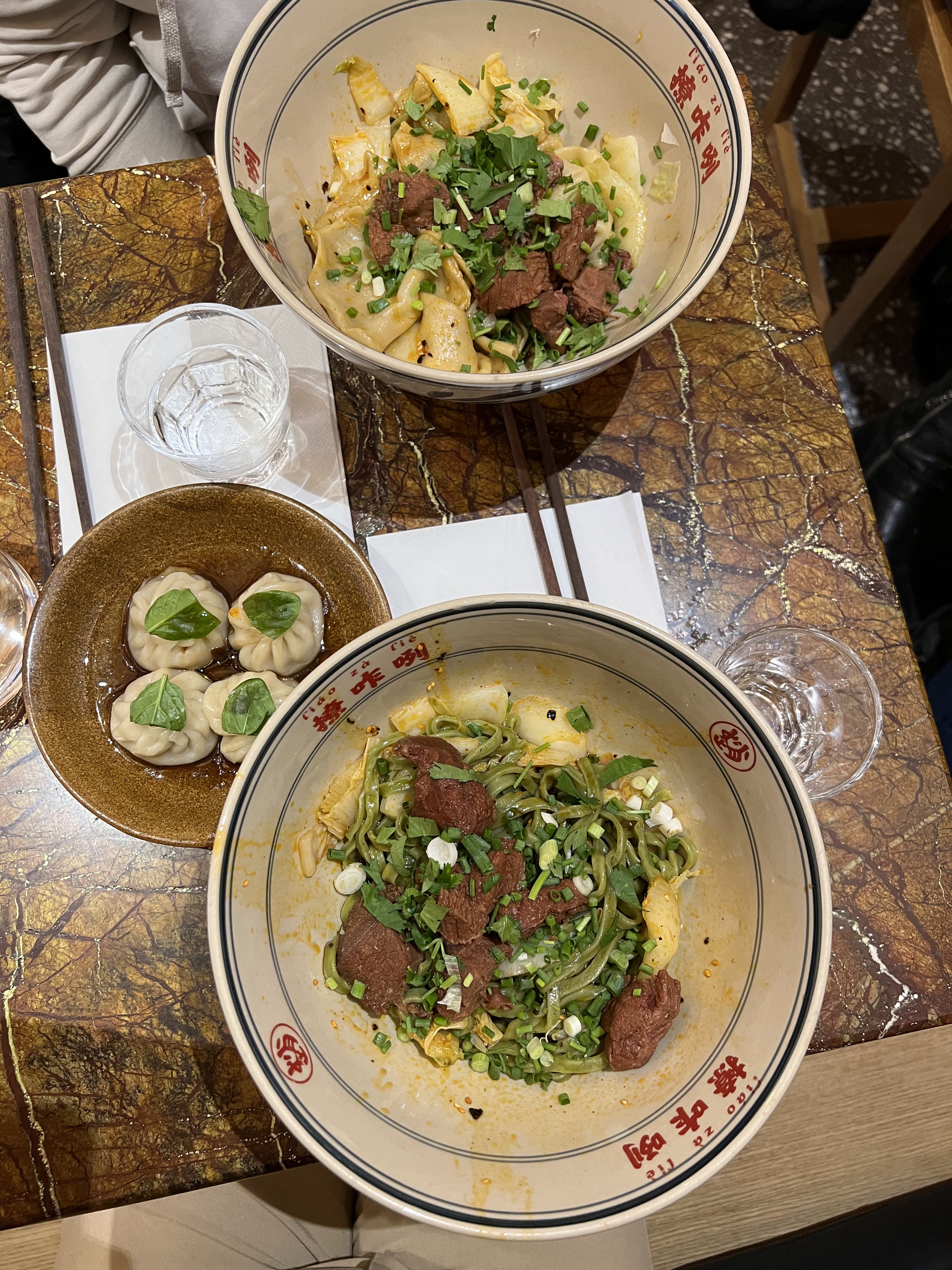 [Découverte] 🇨🇳🍜🥟 Un restaurant spécialisé dans les nouilles Biang Biang. [Repas] 🍜 J’ai pris différent plats pour goûter il y avait les raviolis dorés classiques, xiao long bao et nouilles Biang Biang tomate + bœuf Les raviolis sont correctes mais ils sont surgelés. Je n’ai pas compris la touche de mesclun. Les xiao long bao ne sont pas mauvais par contre j’ai eu l’impression qu’il n’y avait de jus dedans ce qui est dommage. Par ailleurs, je n’ai pas eu de vinaigre pour tremper les xiao long bao. Et il y avait des petits morceaux d’os dans la farce.. 😩 En ce qui concerne le plat les Biang Biang sont bons mais la portion de bœuf est assez petite. Mais c’était plutôt sympa. [Service] Un service agréable et assez rapide. [Décor] Un décor sympathique et agréable. [Verdict] En soit, j’ai bien aimé mais ce n’est pas le meilleur endroit pour manger des nouilles ceintures. Les entrées sont notamment en dessous de ce que je m’attendais. Les prix sont assez corrects par contre les prix des entrées sont assez élevés je trouve.