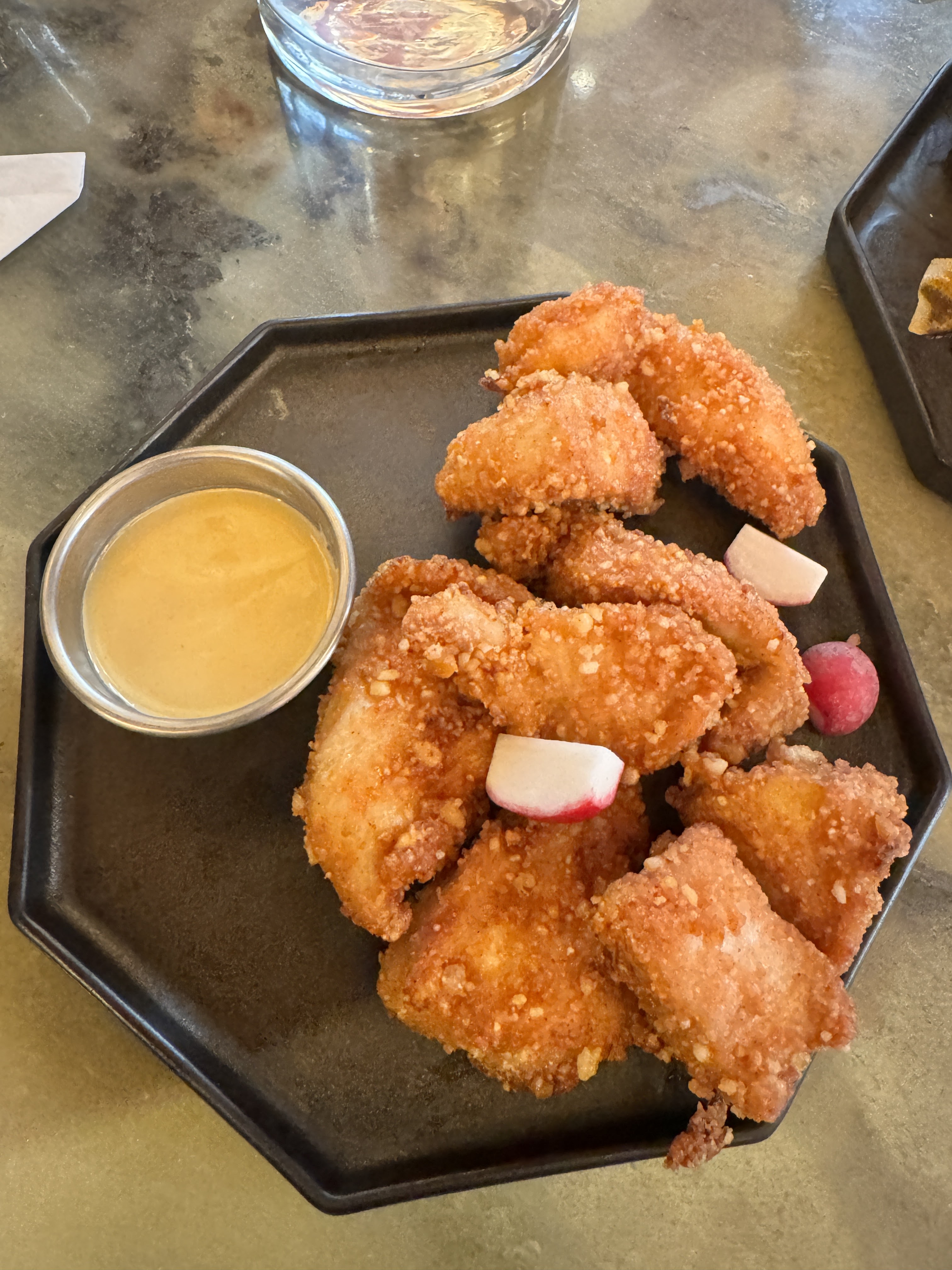 La nourriture était au mieux correcte mais l'endroit est si chaleureux n'en vaut pas la peine ! Cette photo, c'était quand la table à côté de nous était déjà vide mais le restaurant est immense, ils le remplissent et n'ont qu'un seul ventilateur tourné d'un seul côté. Terrible, au moins le service était rapide car j'avais hâte de partir.