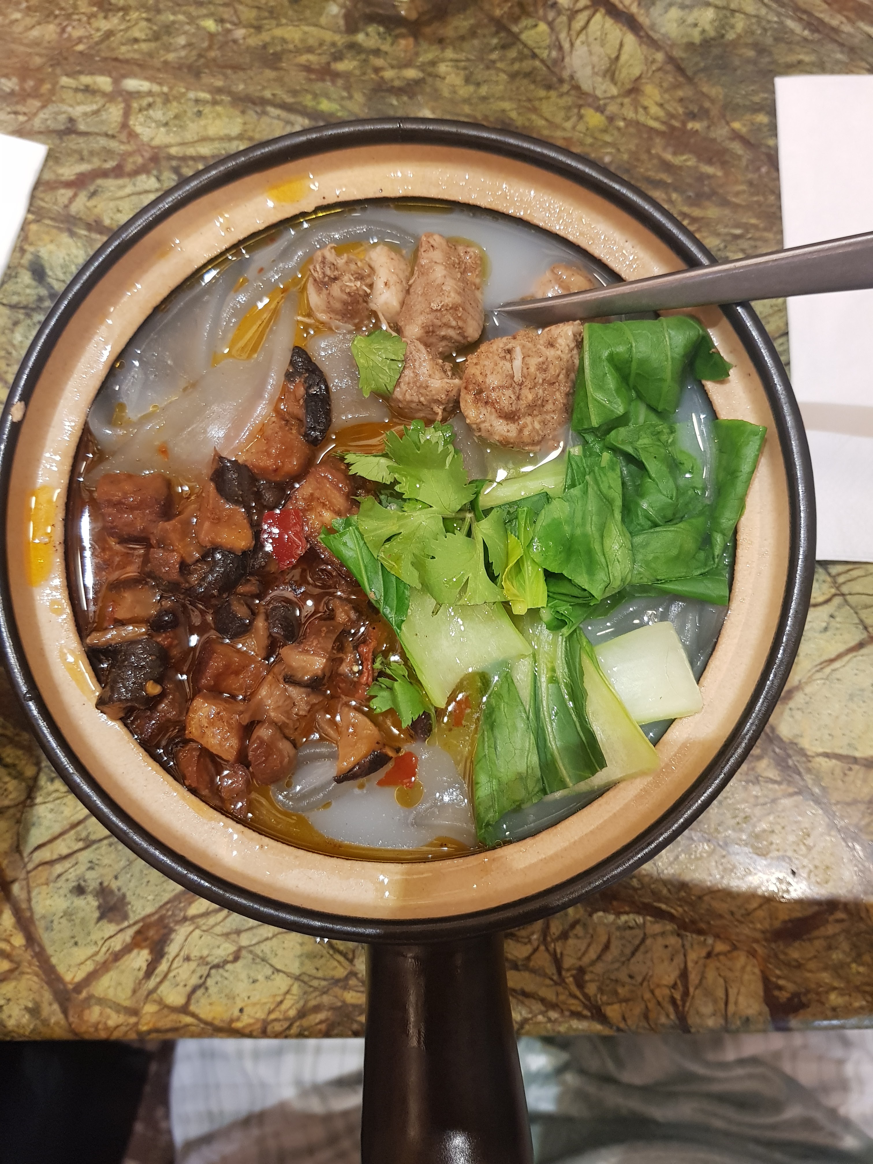 Je vous recommande vivement ce restaurant. Tout d'abord le service est fait avec le sourire et d'une grande rapidité. Il y a une bonne coordination entre la cuisine et salle. La décoration et ambiance générale sont dans le thème. La nourriture est savoureuse et les quantités sont généreuses. Le plat pot en terre au vermicelle de riz a beaucoup de goût. Ce bon plat est réconfortant. Le plat riz au poulet mariné et MO étaient également savoureux. Les raviolis : sont délicieux et bien assaisonnés L'assaisonnement, la maîtrise des épices et du temps de cuisson ont permis de sublimer ces très bons plats !