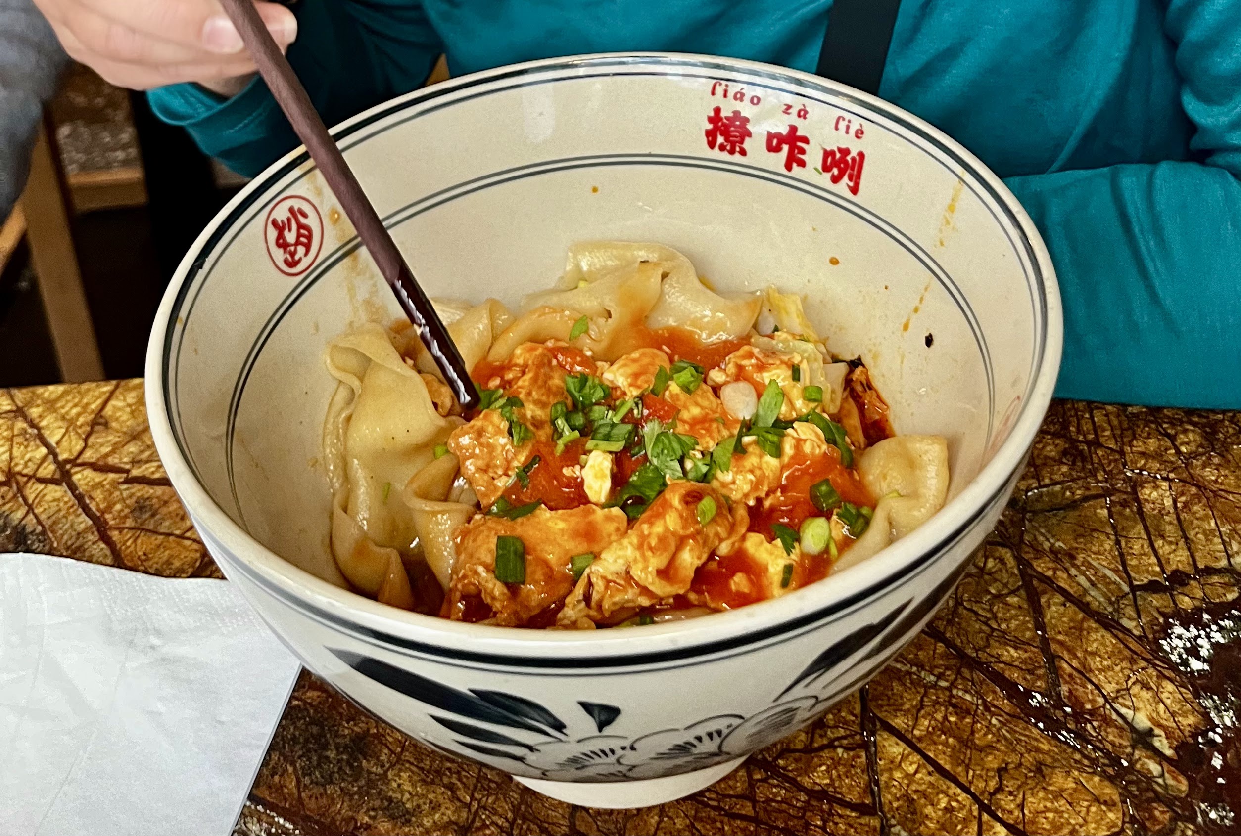 La portion est très, même trop généreuse, j’ai du mal a fini ma commande un bol des nouilles froides a la sauce sésames. Très bonne pâtes, la sauce aux sésames est savoureuse, mais le Poulet n’a aucun intérêt dedans. Mieux vaux prendre une version végétarienne. Les raviolis à la vapeur aux œufs de poisson, c’est ok sans plus. Les prix sont raisonnables. Bonne ambiance.