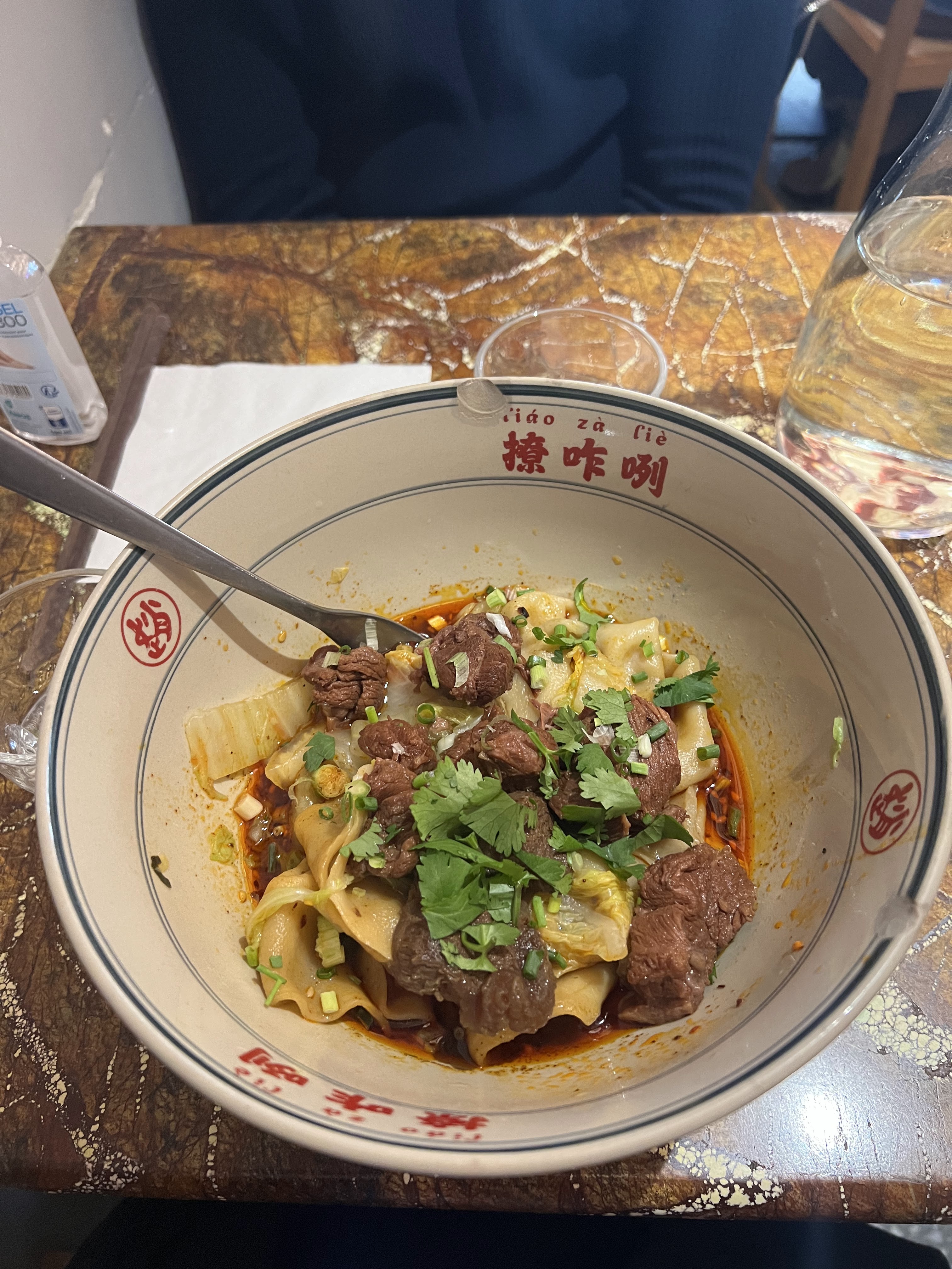 Avec toute la publicité qui a été faite sur ce restaurant, je m’attendais à beaucoup mieux. Franchement le goût est quelconque. Oui c’est épicé, oui y a le goût de la viande etc mais il manque quelque chose et du coup c’est banal. Le goût est le même que dans d’autres restaurant de ce style … je sais pas comment décrire ça, mais pour moi voilà c’est lambda. C’est pas wouahou… Et les nouilles sont trop épaisses, plus fines ça aurait été plus agréable à manger selon moi. Sinon la décoration est très bien et les tables ne sont pas si collées que ça à l’intérieur.
