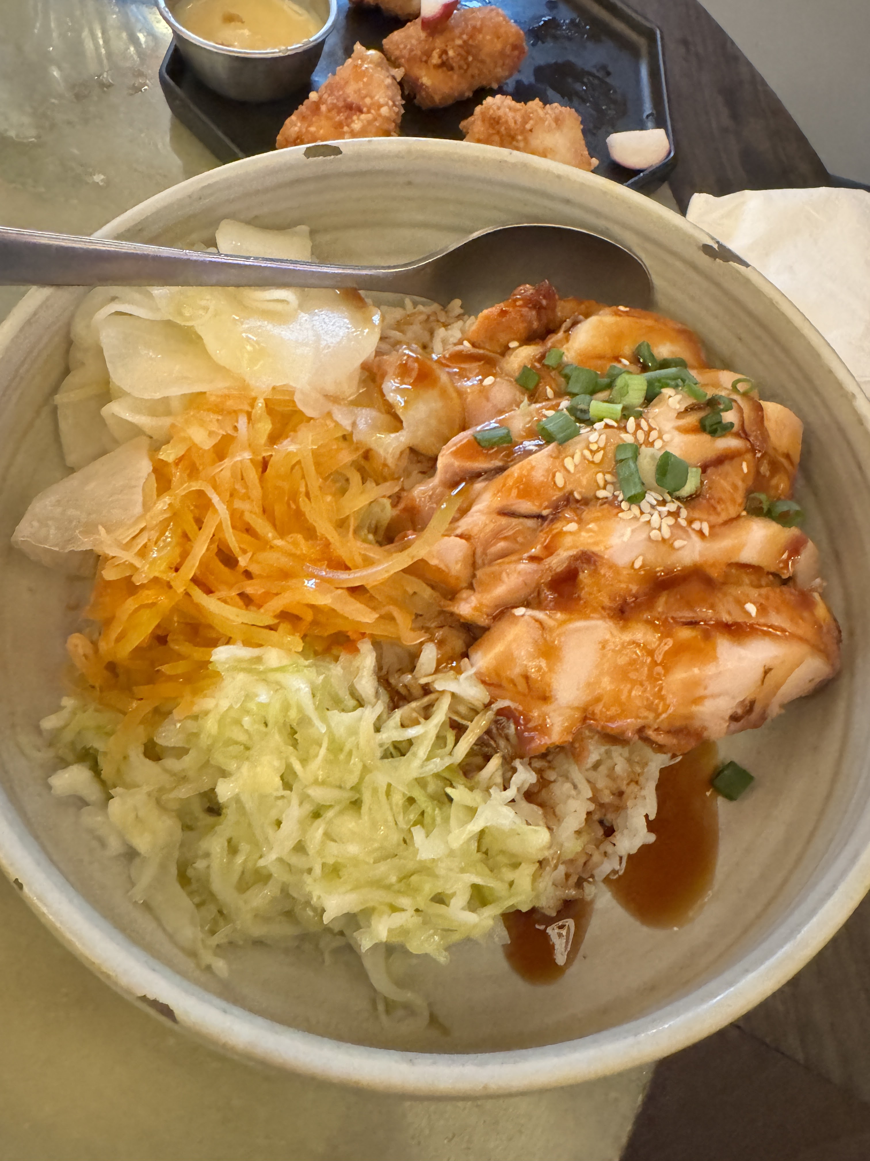 J'ai pris le riz avec poulet mariné, le poulet était excellent !! Mais le riz n'était pas chaud et on sentait que le riz datait un peu, mon collègue n'a pas eu ce problème. Et sinon, c'est dommage qu'il n'y ai pas d'autre sauce à part la moutarde pour le poulet frit.