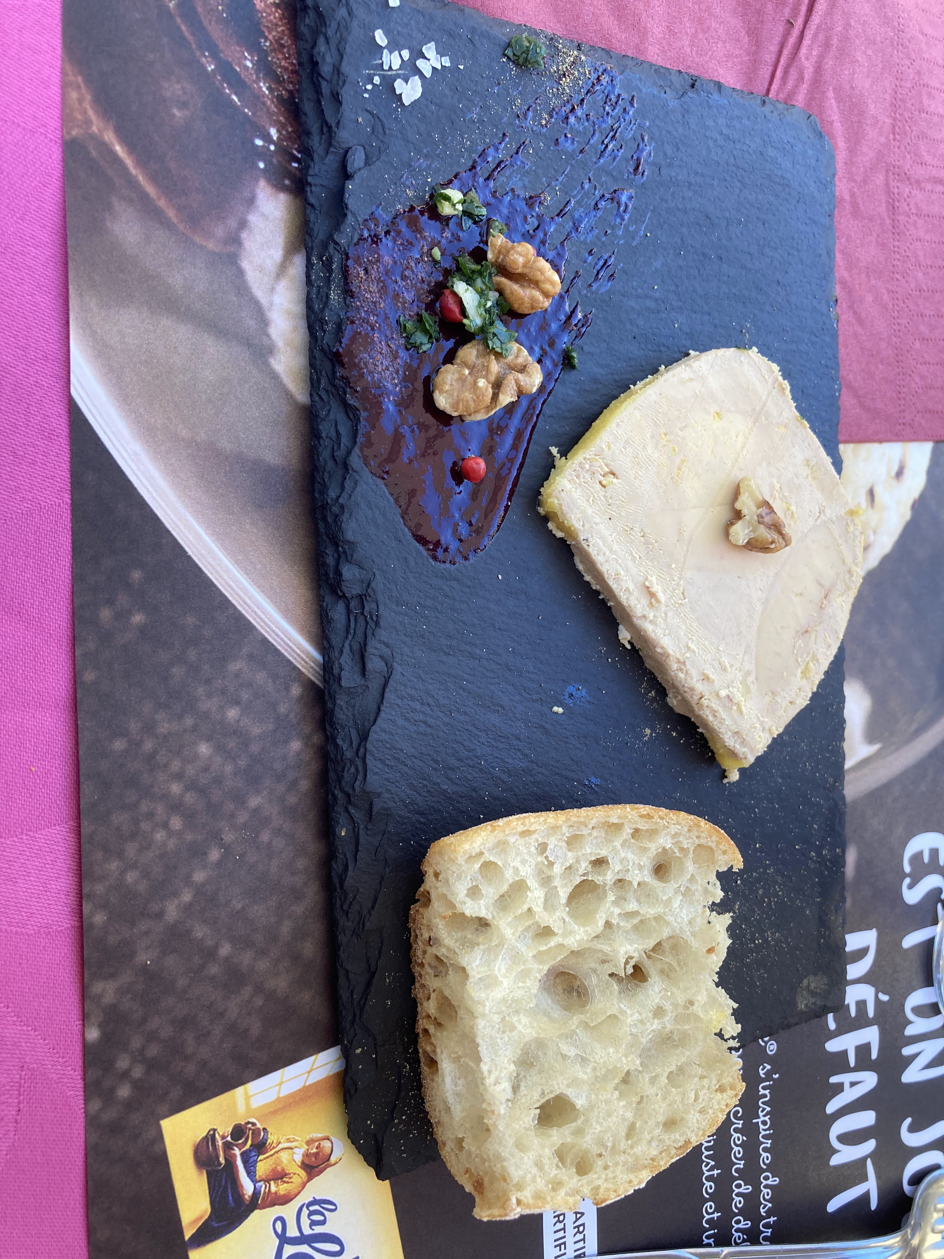 Commençons par le bon: la serveuse brune est clairement du métier, une vraie pro agréable et qui aide à faire passer la pilule. La pilule? Se faire installer sur une table avec nappe pleine de miettes, dressage là-dessus dans le plus grand des calmes... Foie gras délicieux ! Service rapide, mais clairement la viande peut être aussi bonne qu'on veut, faudrait nettoyer plus souvent la plancha car le goût de l'huile usagée dégueulasse gâche un peu le tout. Même la vinaigrette quoi 😂😂 je vais pas tenter, mais son goût quand on la mange doit être le même que quand on expulse le repas quelques heures plus tard 😅 Et arrêtez de manquer de respect à la panna cotta svp