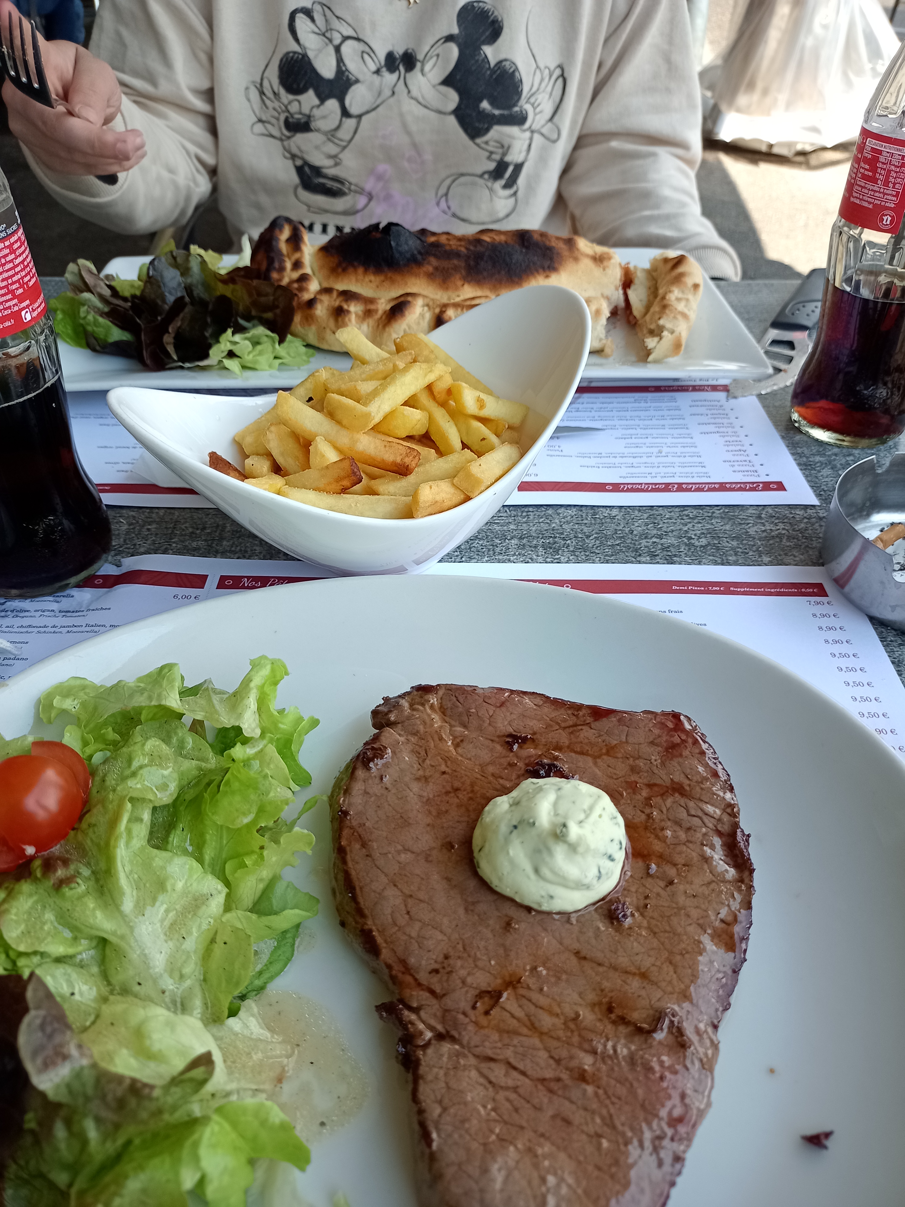 Les serveuses sont très agréables, souriantes, toute fois,je me suis permise de demander au cuisto si les frites étaient sans gluten,mais malheureusement il m'a regardé en me disant il y a pas de gluten dans la patate,j ai dis ben oui mais les frites sont pas faites maison donc une il y a certainement du gluten, pour quelle croustilles,il y a forcément de gluten,une frite n' ai pas juste faites de pommes de terre. Voilà donc ça sera un steak,et de la salade verte,je crois que le prix était le même d'ailleurs. Autrement la tarte flambée pour la personne qui m'a accompagné était très bonne. Attention le midi il faut réserver, mais pas déçu de l' endroit. Cordialement Virginie.