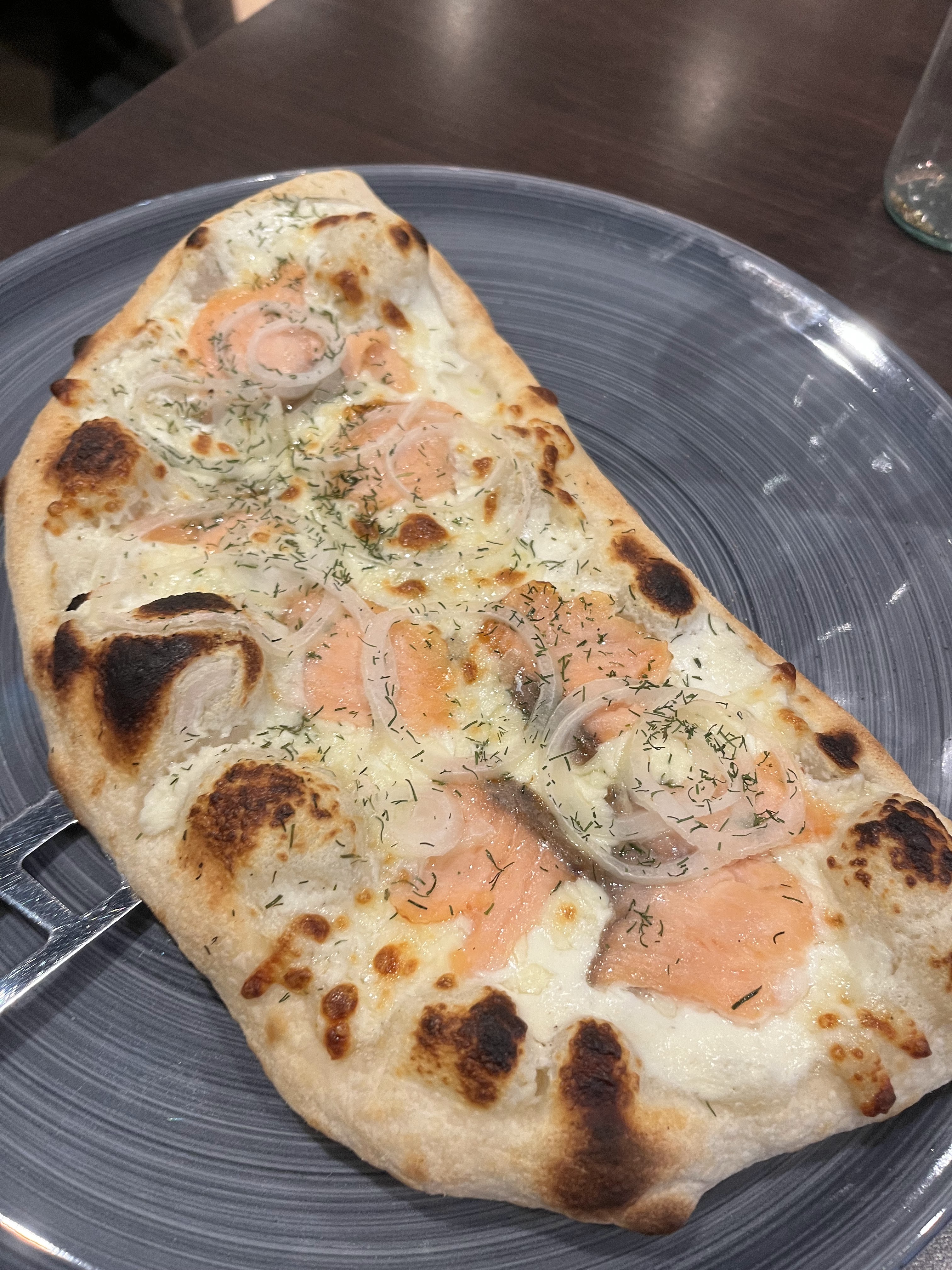 Pizza et tarte flambée incroyablement bonnes. Les prix sont également corrects. Bon pour se renforcer avant ou après le shopping