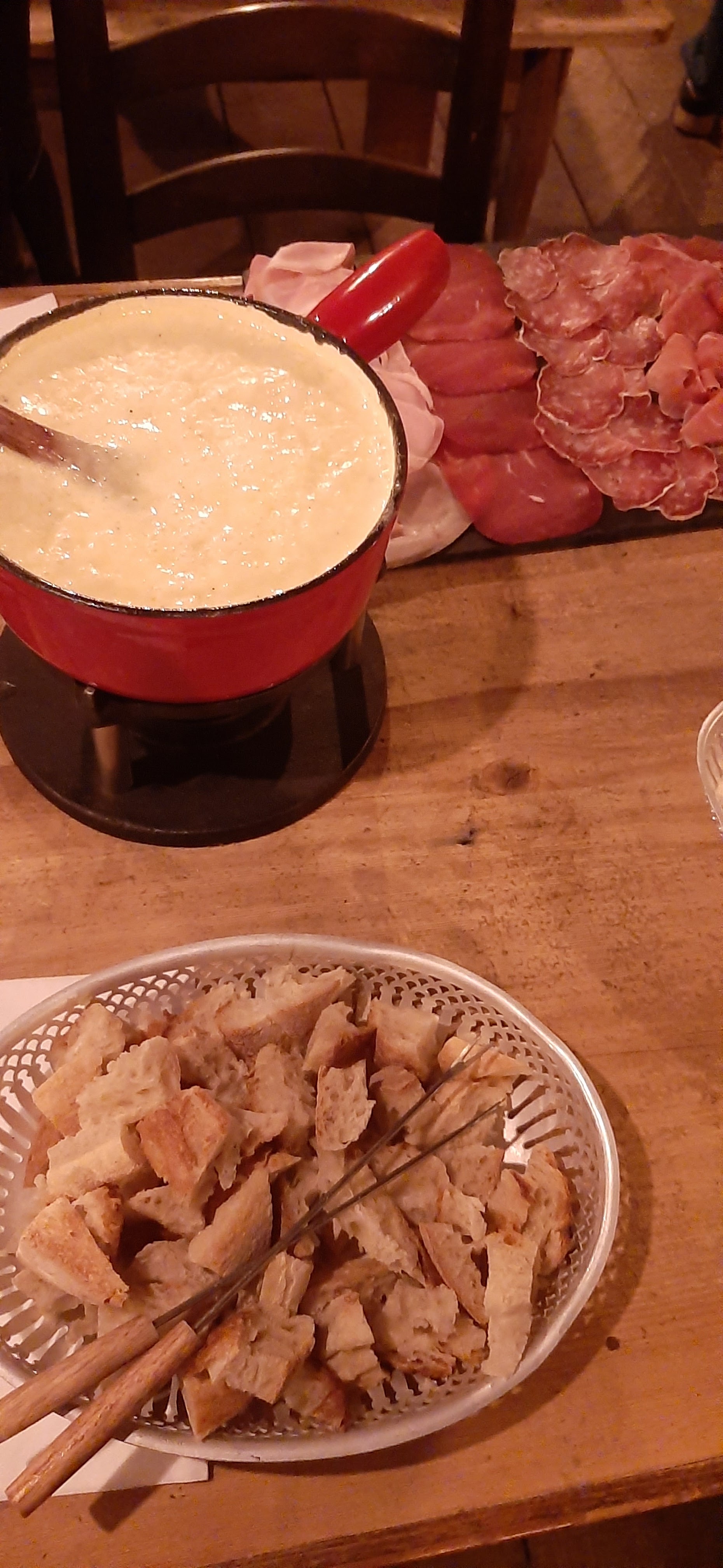 La meilleure fondue qu'on ait mangée. Que se soit le fromage ou la charcuterie, tout était d'une qualité exceptionnelle. On ne regrette qu'une chose, ne pas avoir eu le temps d'y retourner pour gouter la raclette.