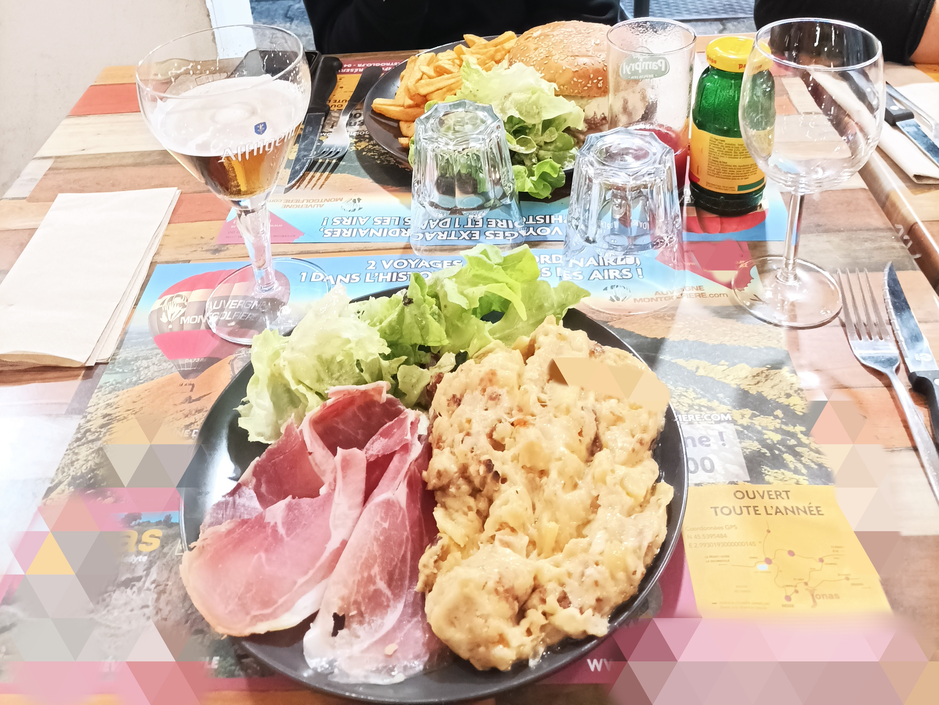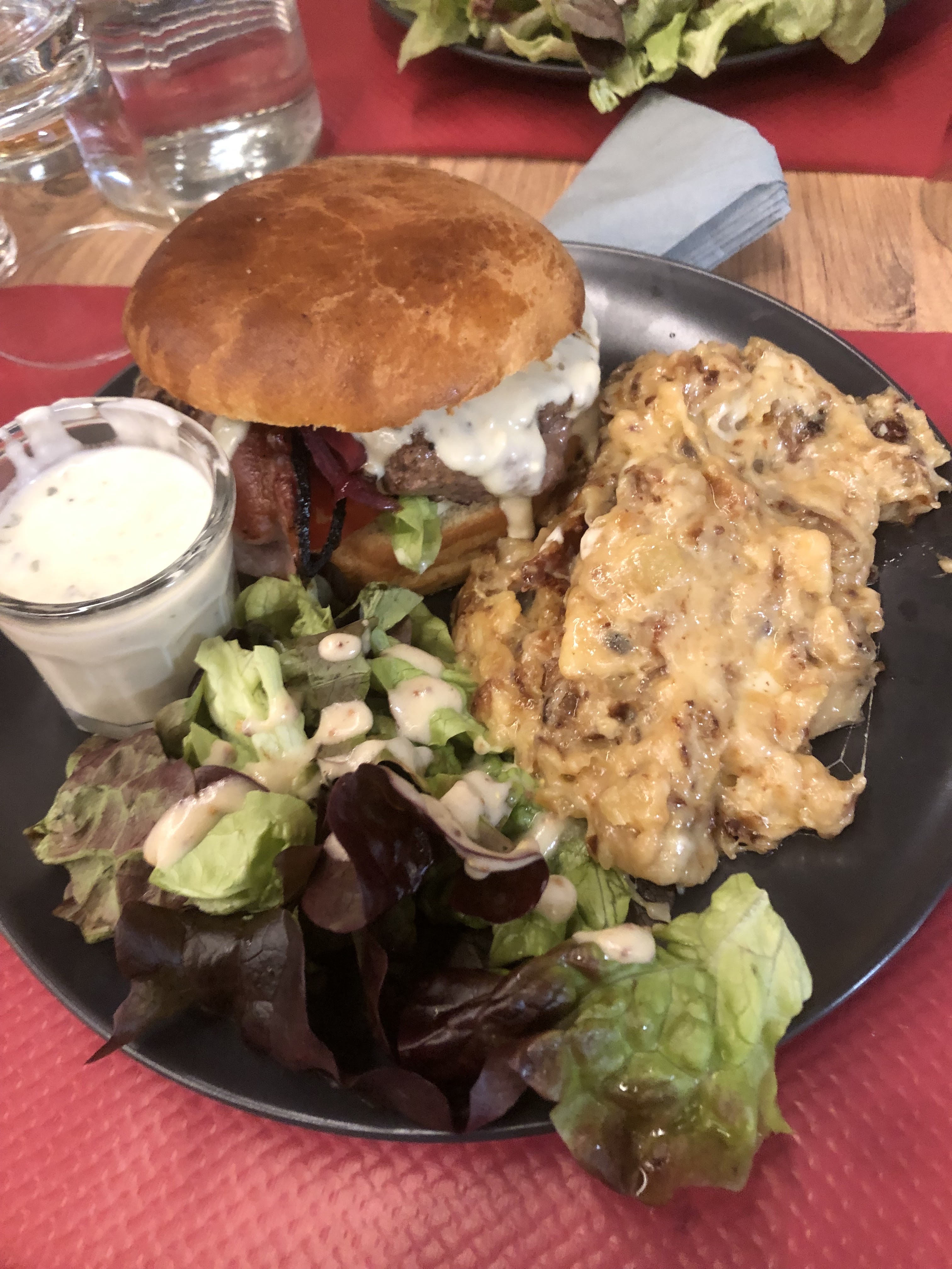 Dernier restaurant après notre premier séjour dans cette région. La salle de restaurant est plutôt bien décoré mais une fois le restaurant plein il fait très chaud et c'est très bruyant Le service est simple mais plutôt efficace même si il y a eu un peu d attente ( une vingtaine de minutes pour 4) La viande et les burgers sont bon petit déception pour le gratin de saint nectaire qui était un peu Fade et pas très chaud