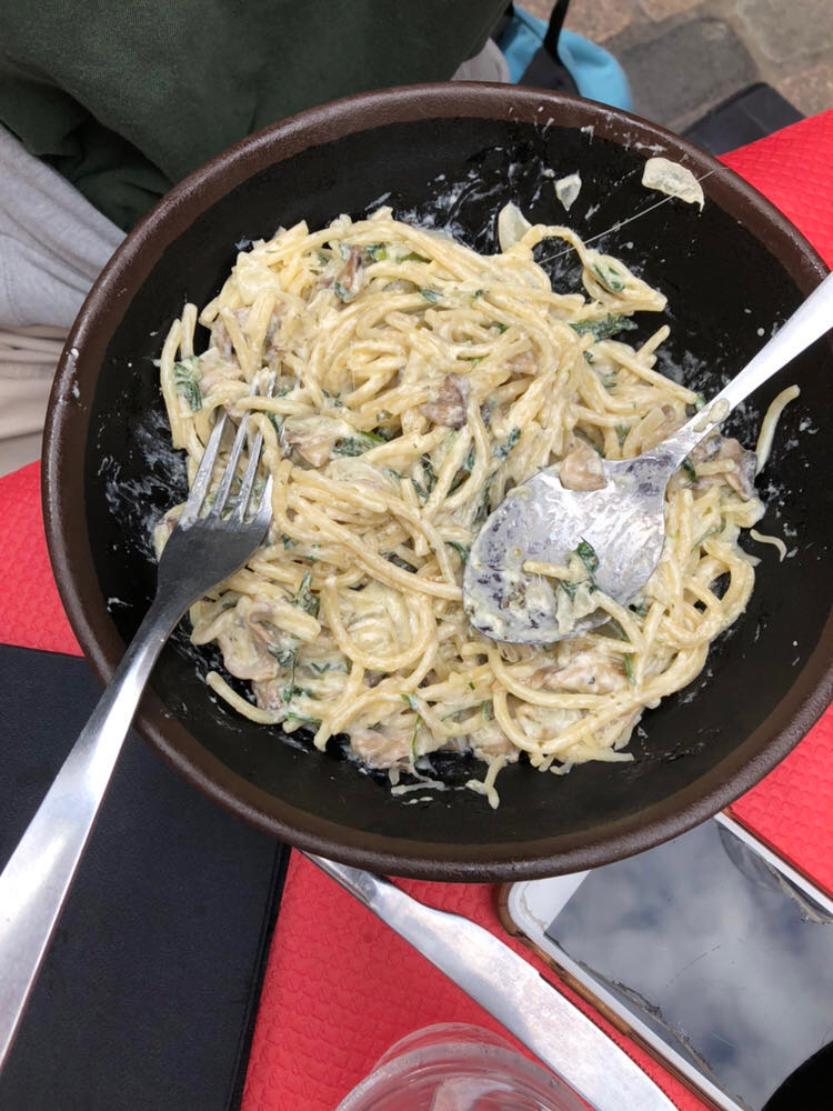 Cadre pas désagréable devant la gare. Pâtes goûteuses et en bonne quantité (spaghettis champignons/saumon). Dommage que le personnel ne soit pas très agréable. Et par ailleurs, contrairement à ce qu'ils nous ont dit, la crème brûlée était froide et pas faite maison, comme la plupart des desserts de la carte (la tarte aux pommes également).
