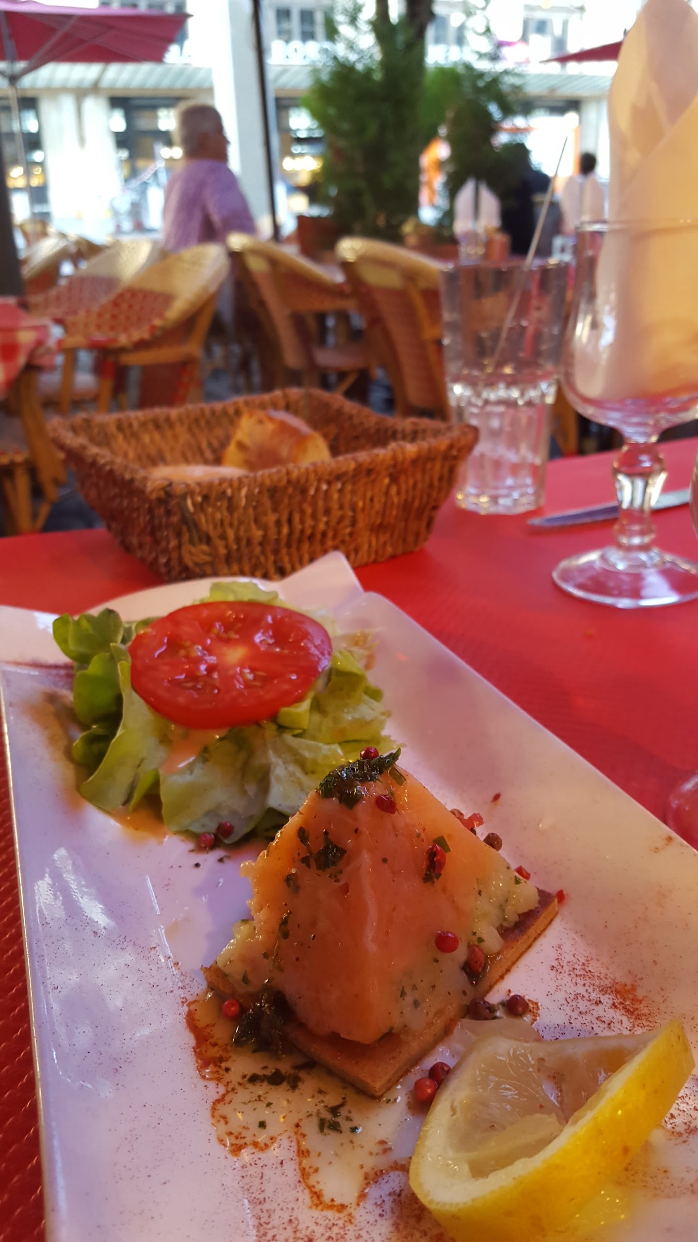 Repas le soir en terrasse, menu à 18,90€ : - Tartare de saumon - Confit de canard - Crème brûlée Globalement satisfait de mon repas tout comme la personne avec qui j'étais (qui a pris la même chose que moi). La cuisse de canard était un peu petite mais sinon les quantités convenaient. Un menu correct à un bon prix. Le seul bémol pourrait venir de la fréquentation autour de la gare ; mendiants, personnes alcoolisées.