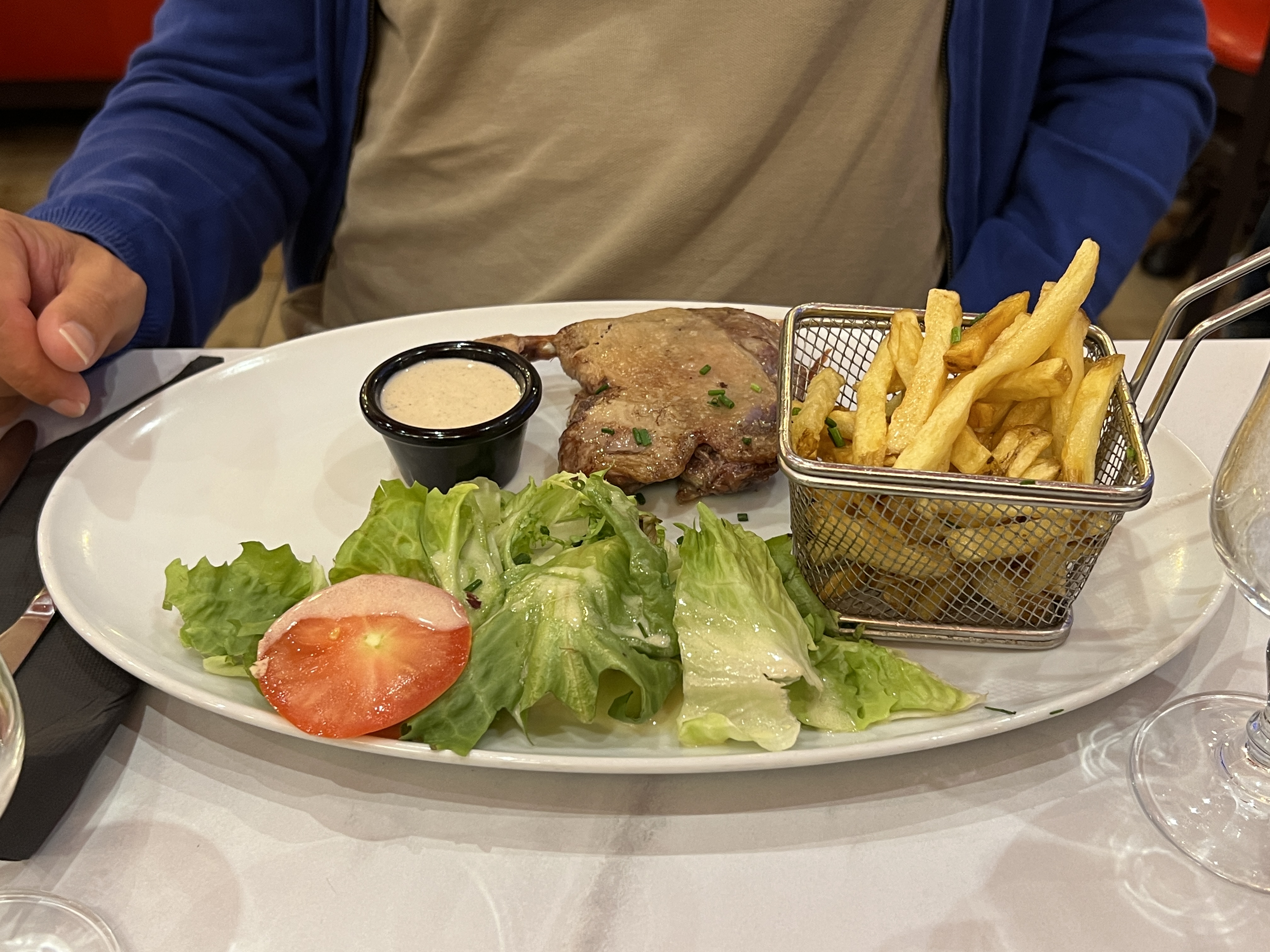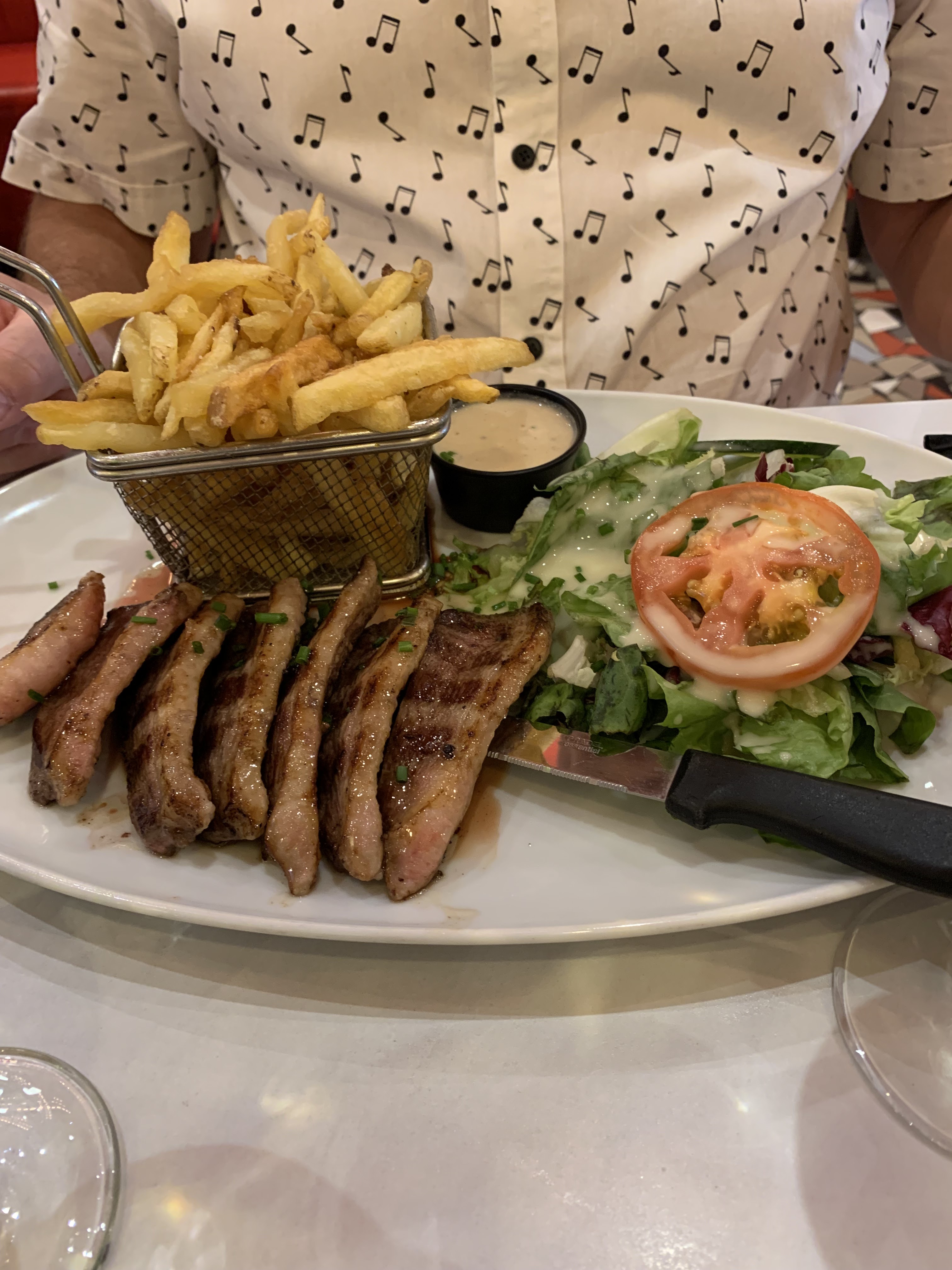 Cadre sympathique, serveuses sérieuses, mais les frites fraîches toutes molles et un tiramisu à base de chantilly à la place de la crème mascarpone c'est moyen.