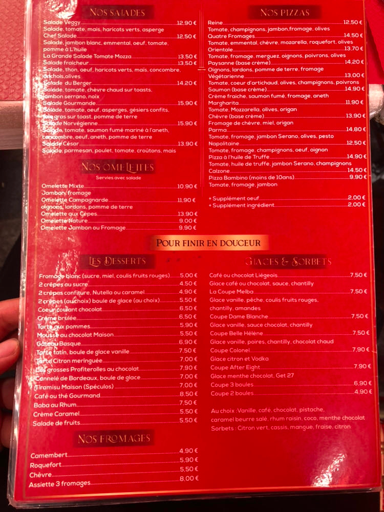 Une expérience qui n’est pas à jeter. L’omelette campagnarde, pour un prix relativement correct de 10€80 (ou 90 que sais-je), était convaincante. Le dessert, (qui était une crème caramel pour moi) était cependant très moyen. Je rajouterais à cela que le personnel de service paraissait tendu et peu enclin à la courtoisie envers ses clients. La serveuse responsable de notre table était à la limite du (très) désagréable et m’a reproché au moment de régler, de ne pas lui avoir dit que je prenais un menu mais d’avoir choisi plat par plat, ce qui l’a bien entendu induite en erreur ! En bref, allez pour manger, sans vous y attarder