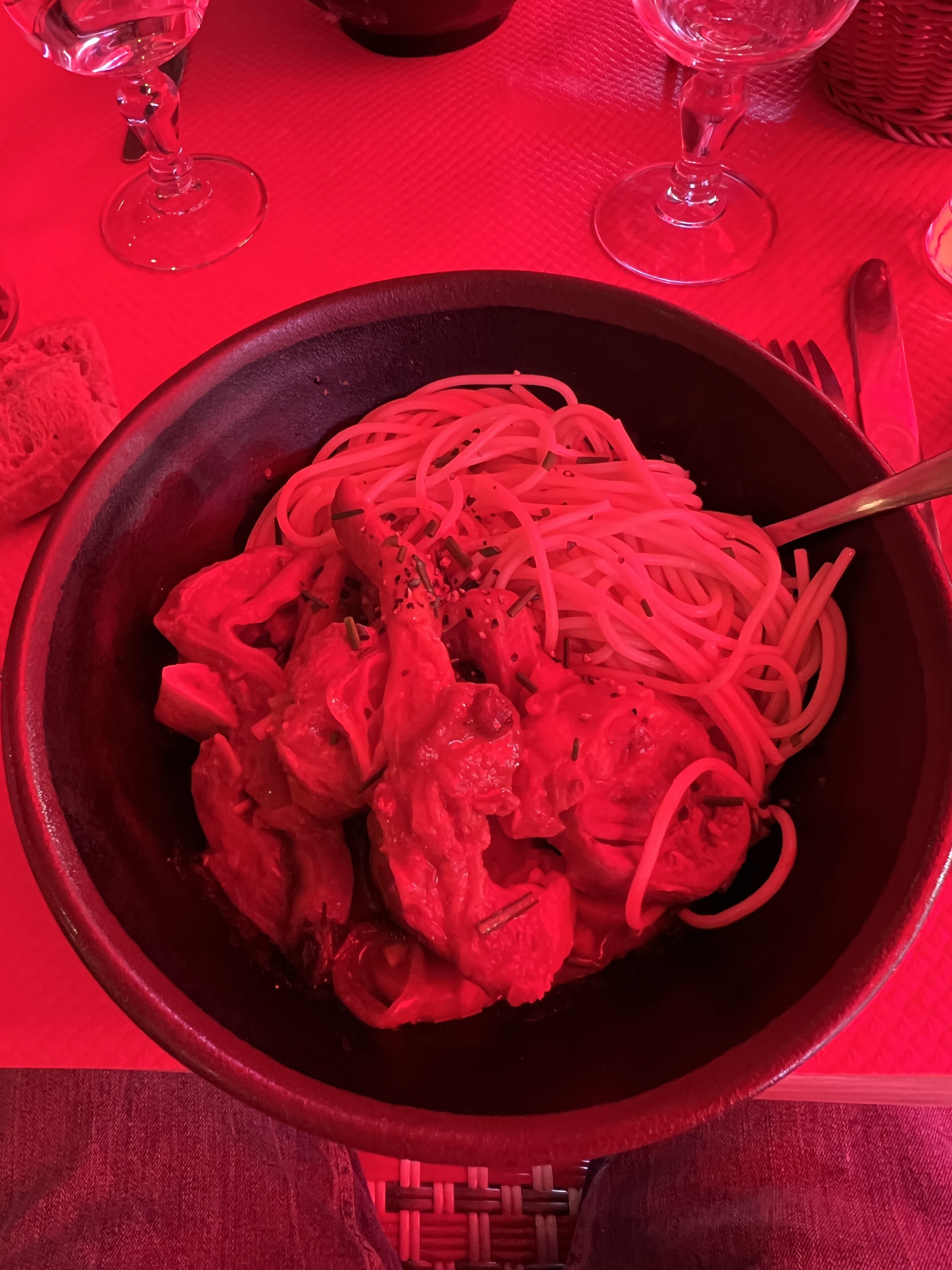 Je déteste laisser de mauvaises critiques et je m'empresse d'ajouter que mes 3 amis ont adoré leur nourriture et que le serveur était charmant et attentionné. Mais mes moules - je les ai commandées dans une sauce au roquefort qui était la plus fine que j'ai jamais eue, le les coquillages semblaient être une combinaison de granulés bien cuits et réchauffés, ce qui m'a fait penser qu'ils restaient simplement frais avec ceux déjà cuits, mais la goutte d'eau qui a fait déborder le vase a été de trouver quelques chips dans ma casserole qui ne provenaient certainement pas de ma portion. Alors, est-ce qu'ils ajoutent d'autres restes dans le mélange ? Malheureusement, j'avais un train à prendre, je n'ai donc pas pu recevoir une nouvelle commande à temps, j'ai mangé ce que je pouvais et je me suis plaint après. Le directeur est venu s'excuser et m'a offert un café gratuit, puis un verre de vin gratuit, mais je n'ai pas été impressionné. Finalement, il a supprimé le prix du pichet de rose de l'addition, ce que j'ai accepté. Cependant, le problème des moules est totalement inacceptable et j'espère juste que mon estomac ne sera pas affecté.
