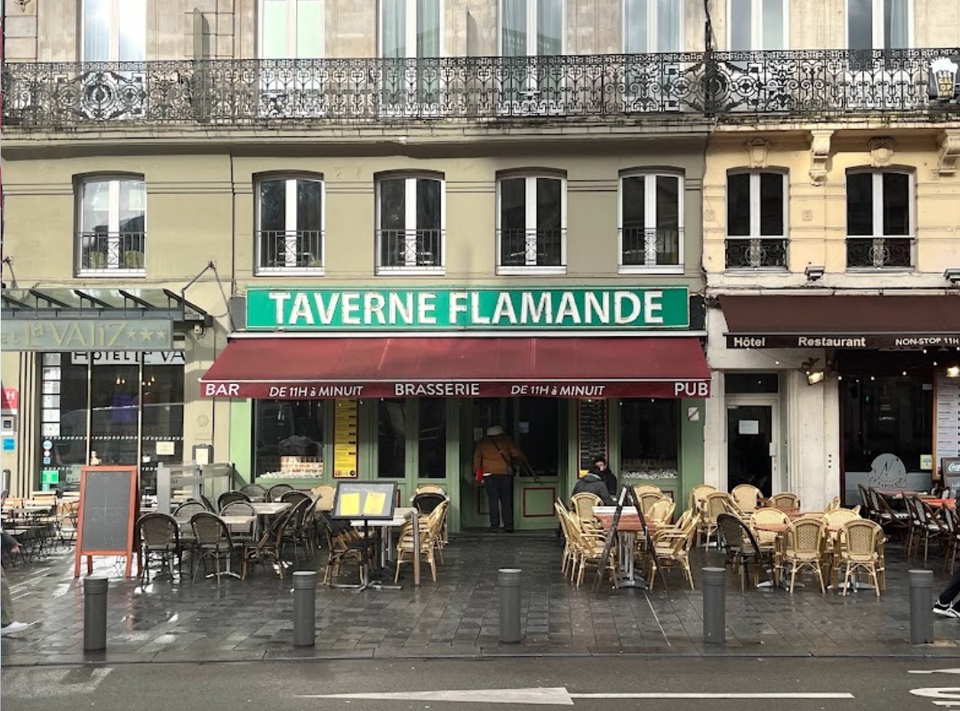 Taverne située juste en face de la gare Lille Flandre ; très pratique ; bonne cuisine locale