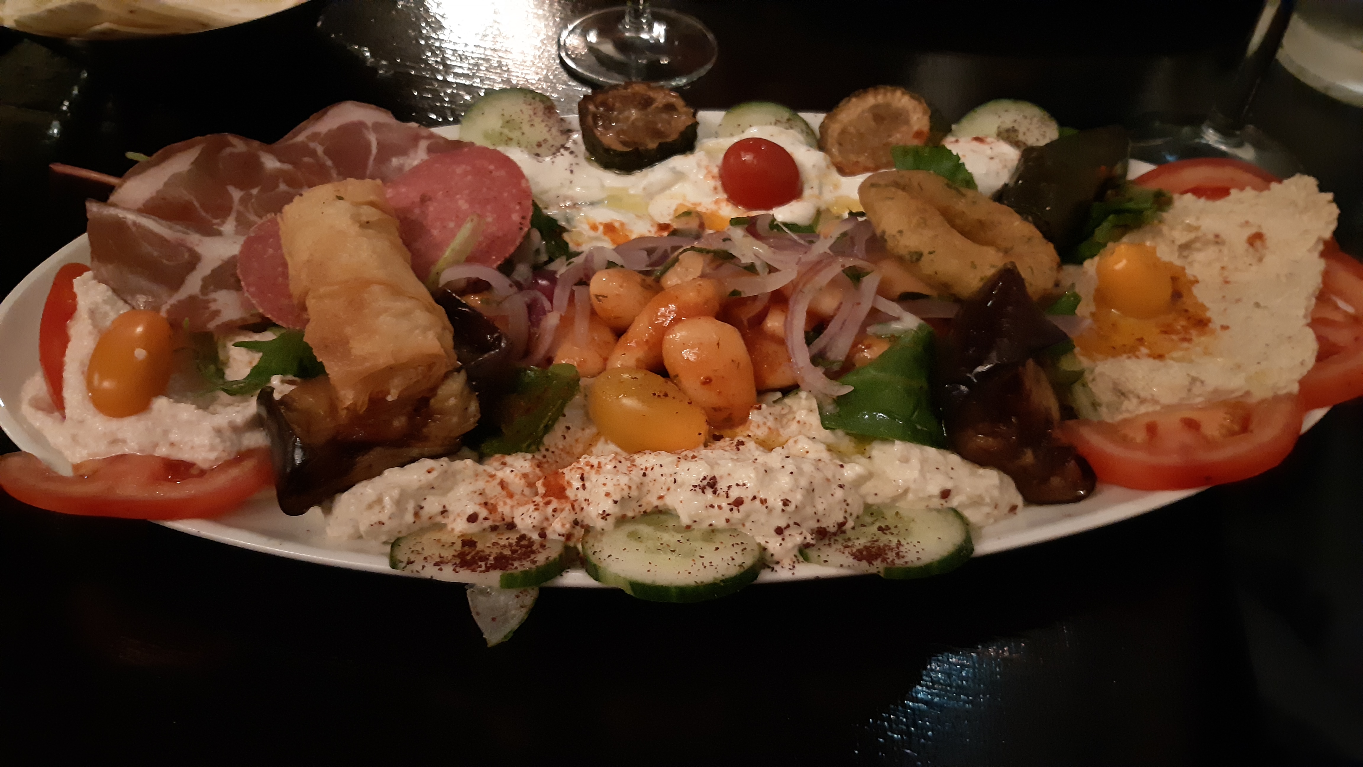 J’y suis aller avec ma copine et nous avons passés un moment formidable. Ont y sens comme à la maison tout le monde est sympa, la déco est génial à sa manière ! Les plats sont copieux, délicieux, bien assaisonnées. Le plats de mezzés étais énorme et également super bon ! La brochette d’agneaux étais un pur régal, les gambas aux safran aussi. Les dessert étais bon mais sans plus excepté pour le baklava qui étais vraiment super ! Et avec un thé à la menthe pour terminé en beauté ! Sans oublier le gérant qui nous as offert deux shots d’alcool de rose ! Allez y vous ne serez pas déçue !