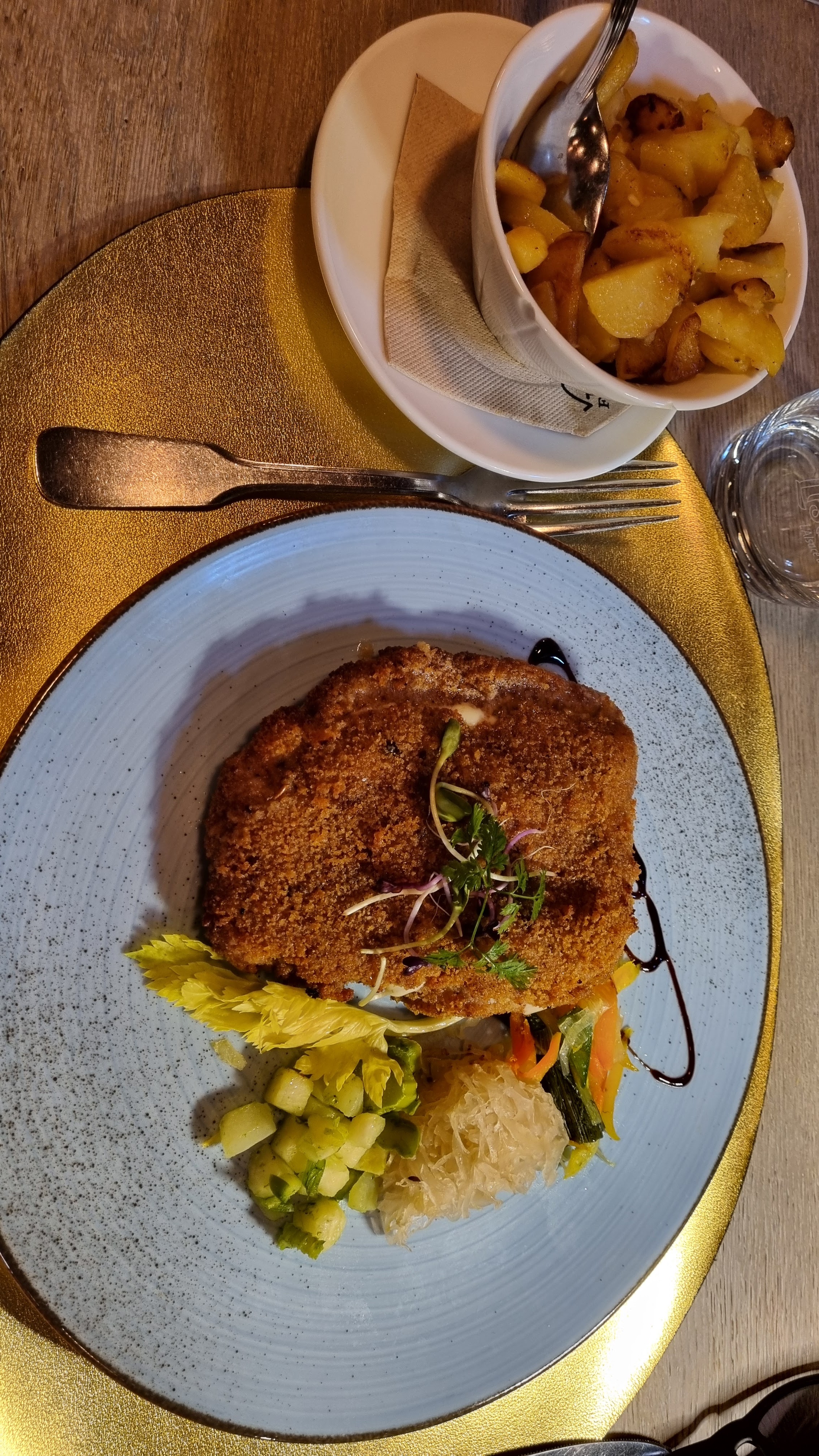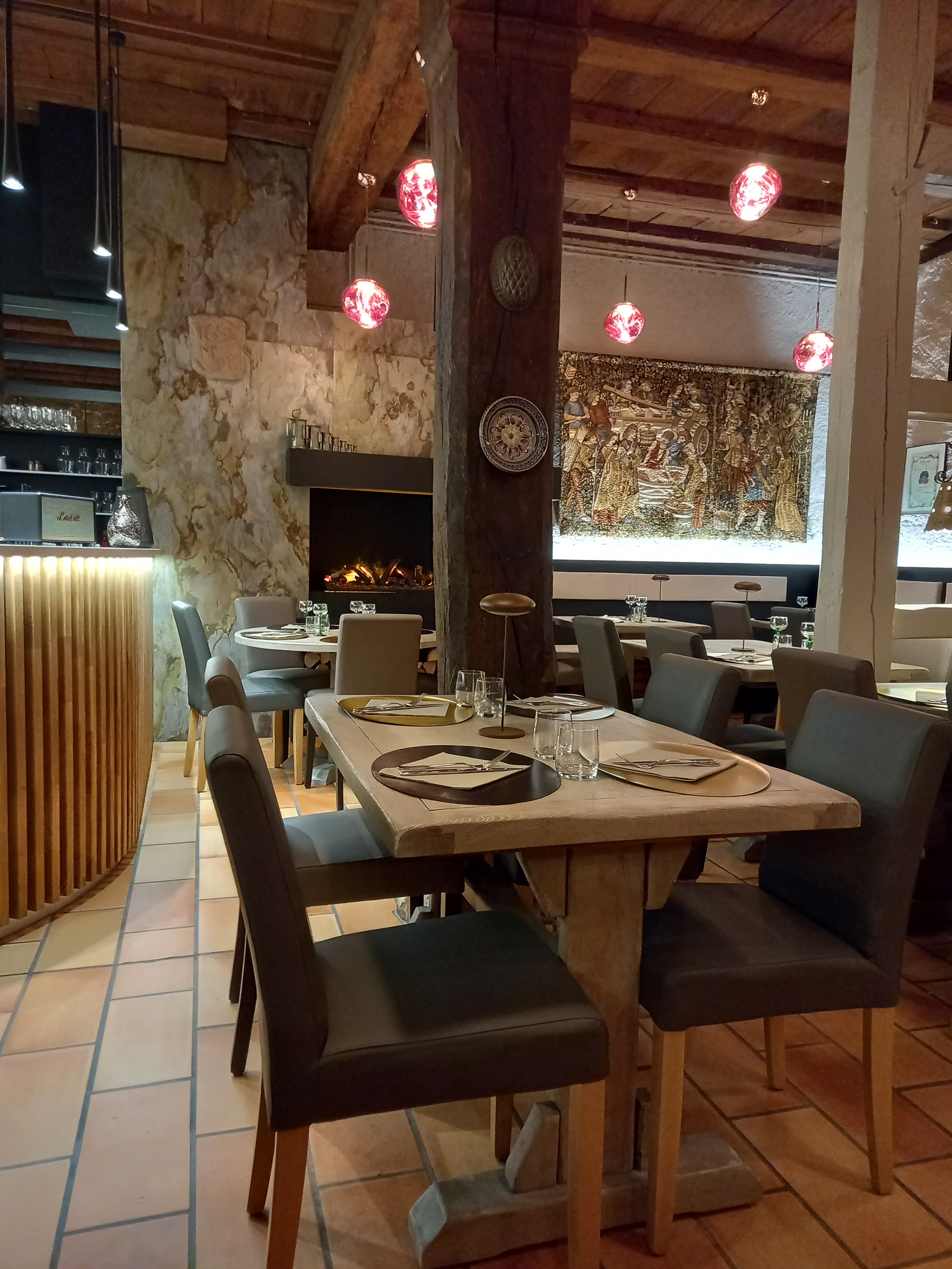 Restaurant découvert sur les conseils d une amie, le cadre est magnifique , nous sommes un groupe d amies à nous rendre dans ce restaurant, l accueil est mitigé parsemé de petites critiques, bref nous avons faim et voulons nous détendre en dégustant des mets de qualité. Nous restons déçues par rapport à l accompagnement choisi pour nos plats à savoir des spatzles nous devons nous partager deux coupelles de spaztles delicieuses à 5! Nous n hésitons pas à demander un supplément à la serveuse qui nous répond sur un ton sec c est pas assez ? Pardon mais nous avons faim et doit on vraiment se justifier ? Pour finalement devoir attendre la fin du repas , assiettes vides et enfin se partager une coupelle de spaztles, vraiment dommage...et malgré les explications du chef qui justifie la quantité des accompagnements proposés par mesure d économie nous restons dubitatives. . Une étoile pour le service, serveuse qui fait la gueule toute la soirée ç est vraiment pas très agréable, il manque un peu de dynamisme et un sourire pour servir les clients. Voilà une expérience culinaire qui ne nous a pas fait perdre notre bonne humeur , c est l essentiel !