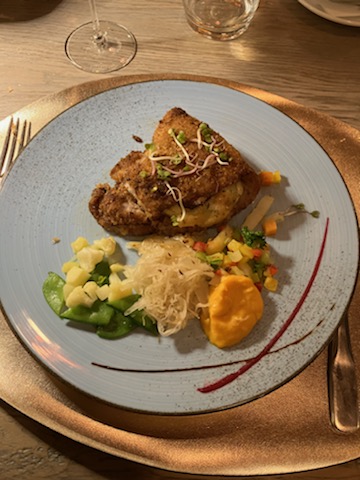 On se régale à chaque fois 👍👍👍 De l'entrée (croustine au munster et miel,) au plat (cordon bleu et spaetzlés) au dessert (torche aux marrons) TIPTOP 👌👌