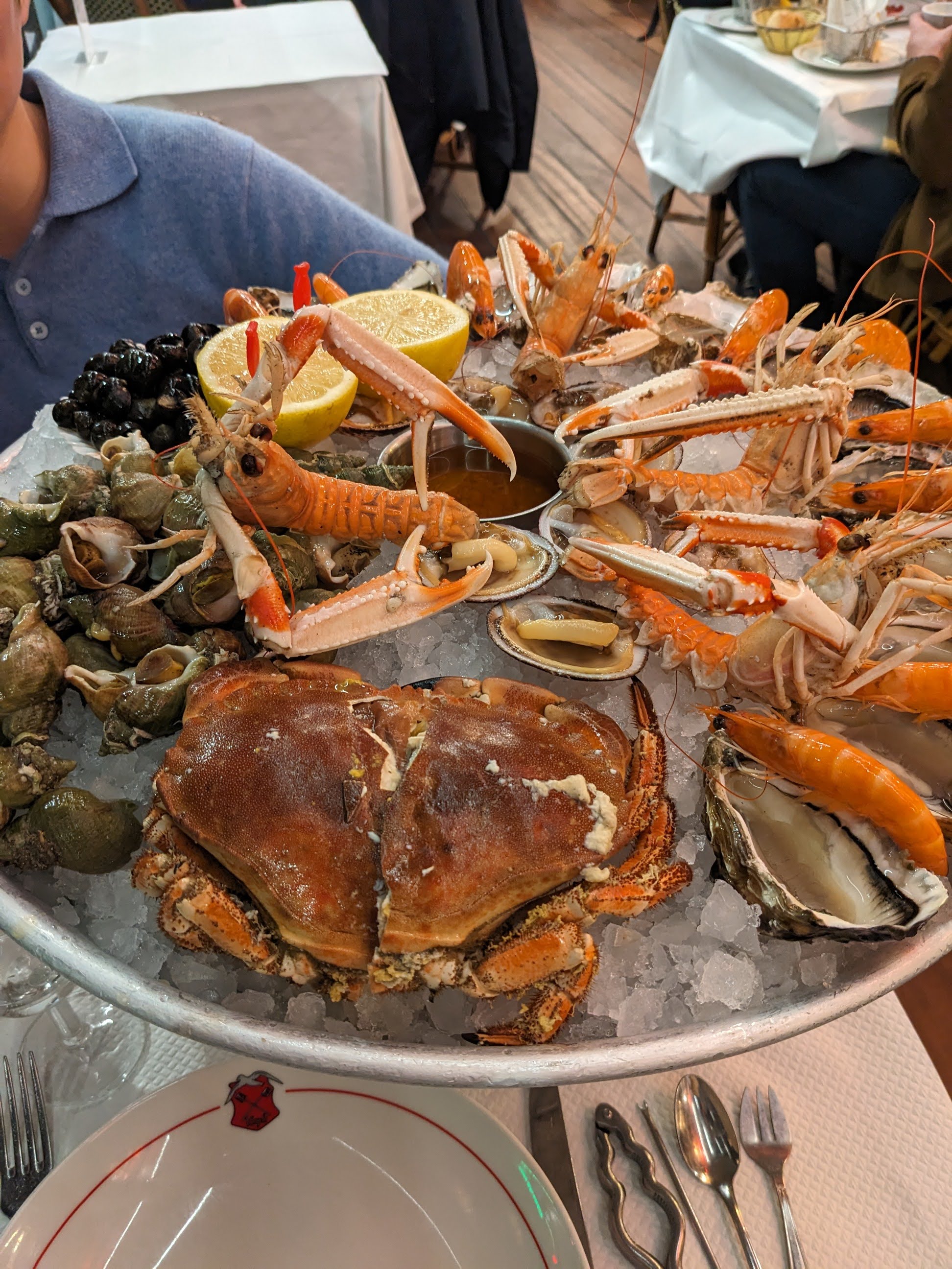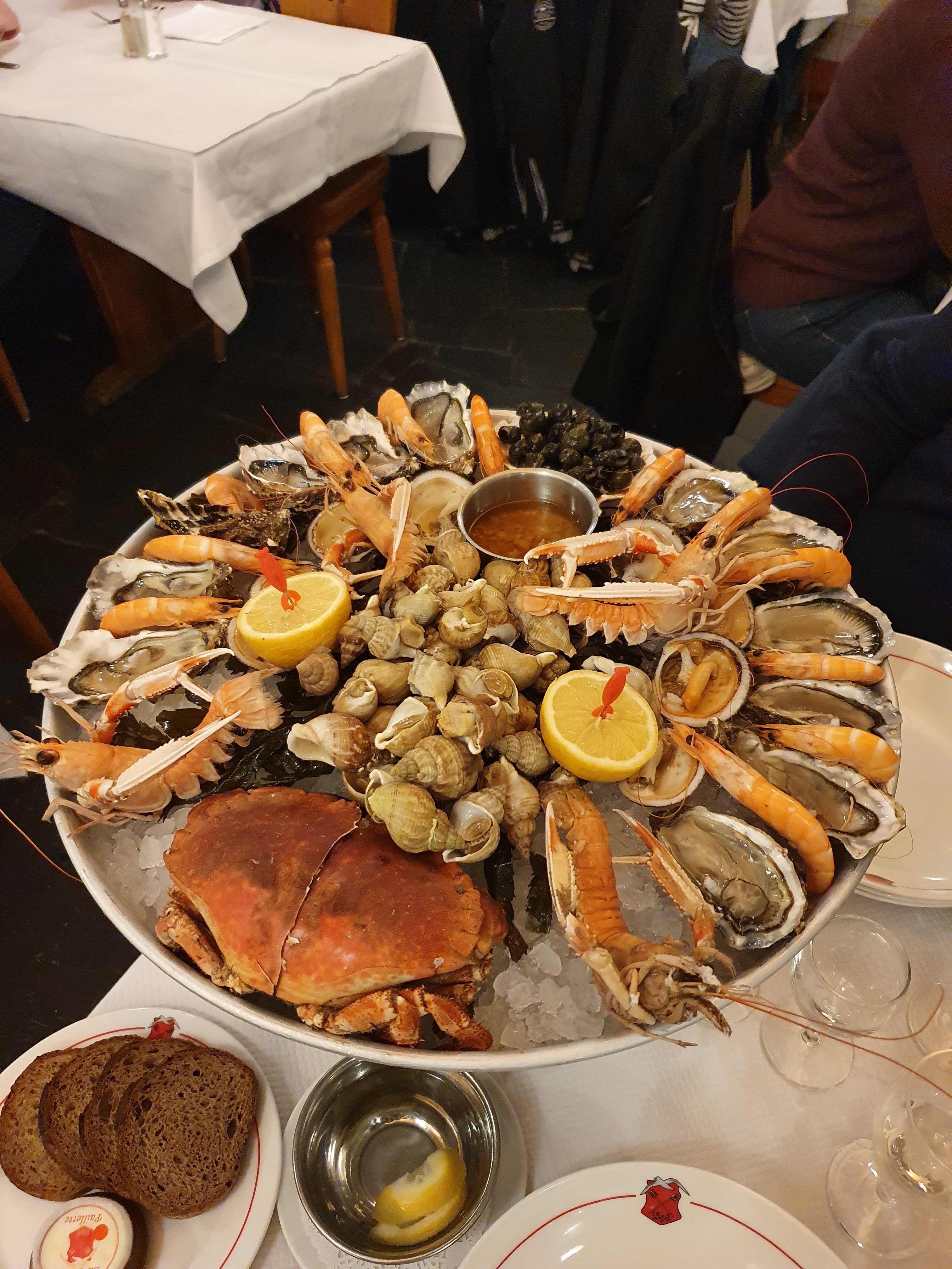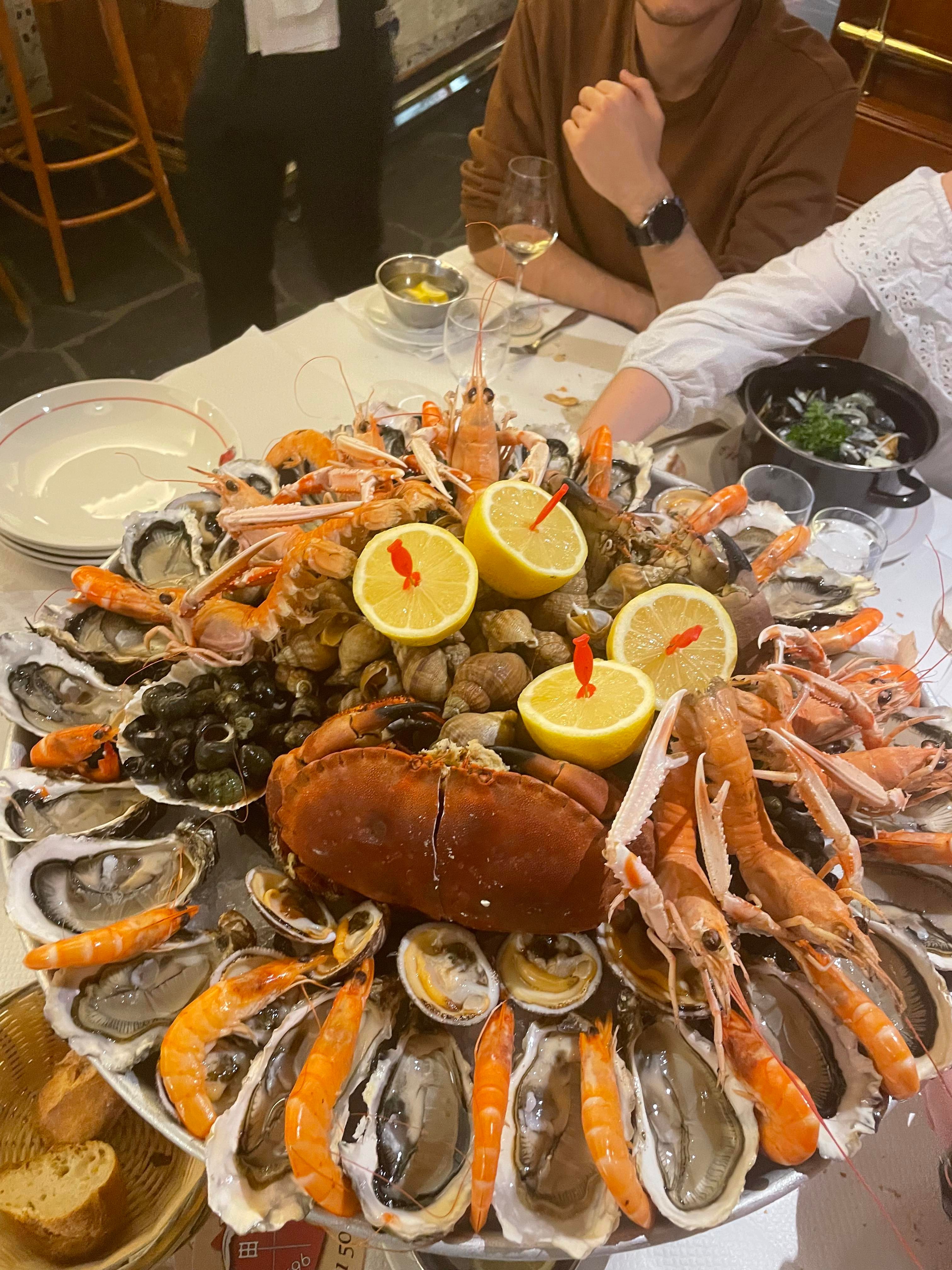 Plateau de fruits de mer super frais comme d'habitude rien à redire sauf la crème brûlée qui était trop cuite
