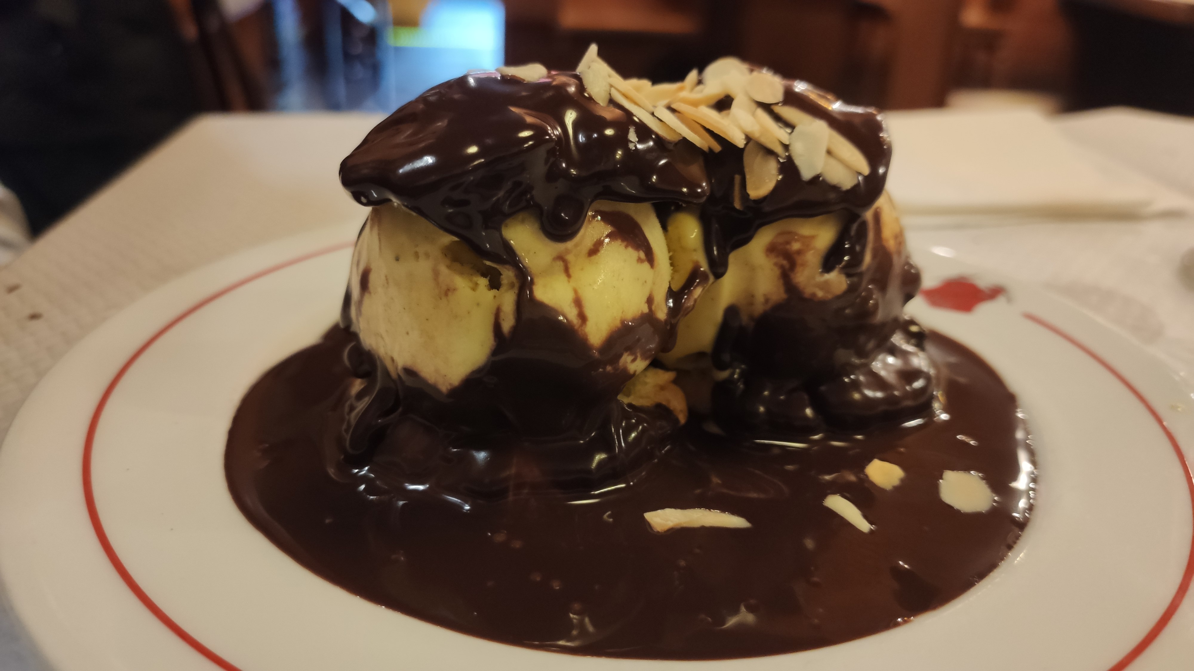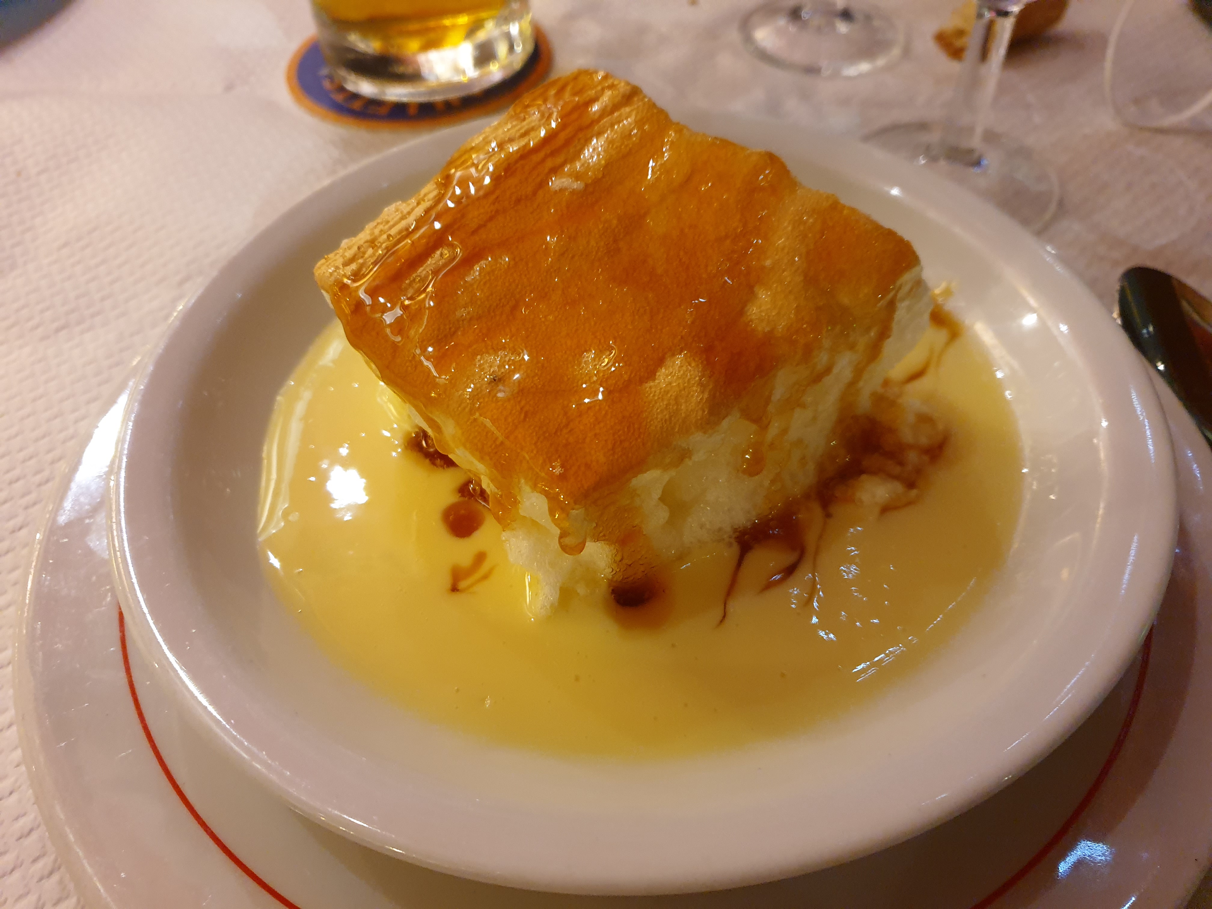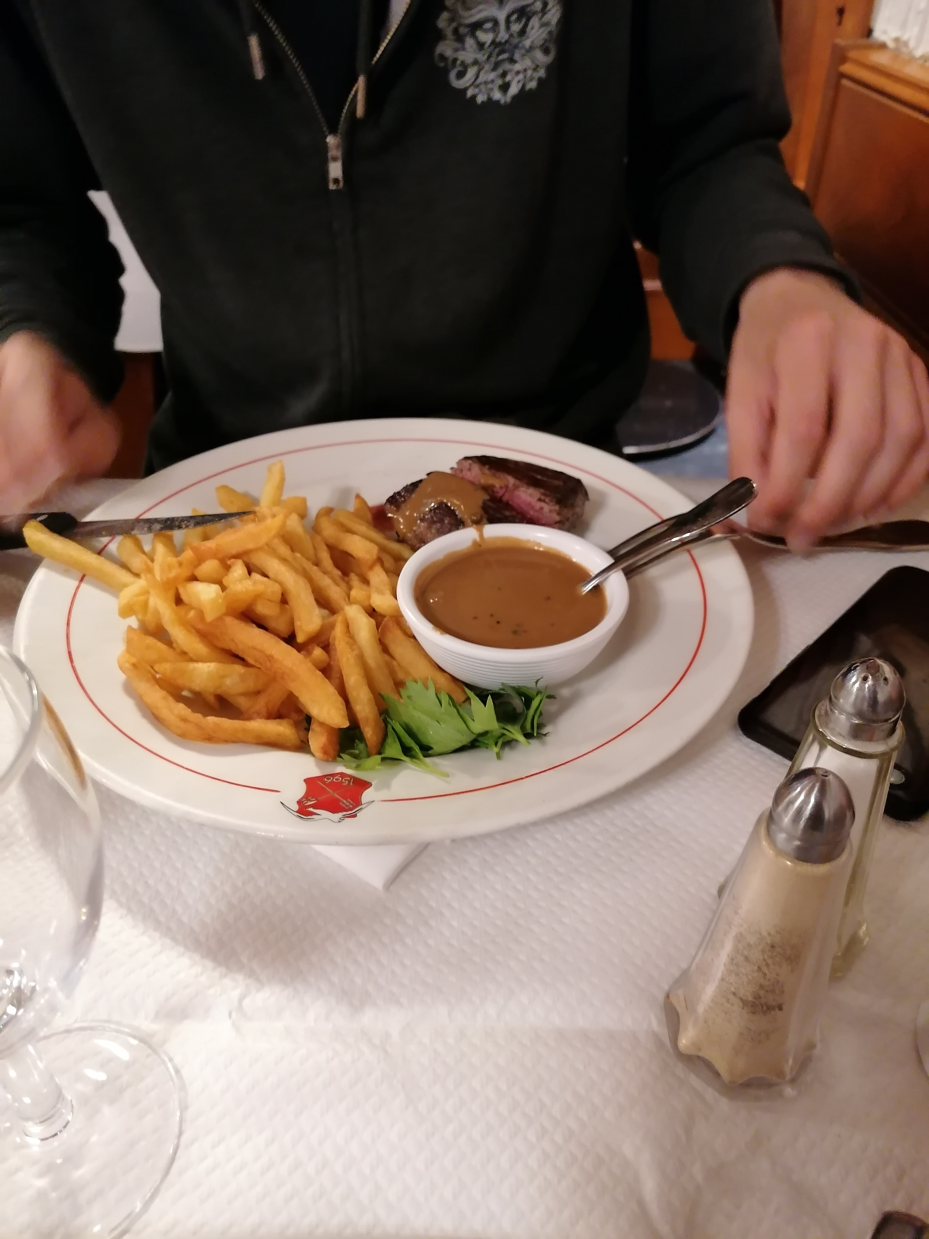 Restaurant incontournable de la ville et de son patrimoine ! Tout le monde devrait y aller au moins une fois, même s’il faut avouer que l’établissement semble un peu en perte de vitesse, notamment s’agissant de la qualité des plats. On pourrait croire qu’ils se reposent un peu sur leur réputation tant les salles sont toujours pleines quand bien même la nourriture n’y est pas exceptionnelle. Notre serveur n’était pas aimable plus que ça, même pas sûr qu’il nous ait adressé la parole une seule fois à vrai dire. La cuisine est parfois un peu trop traditionnelle, notamment au niveau des desserts. Ce n’est en effet pas forcément un plaisir de devoir choisir entre une crème brûlée et une île flottante.