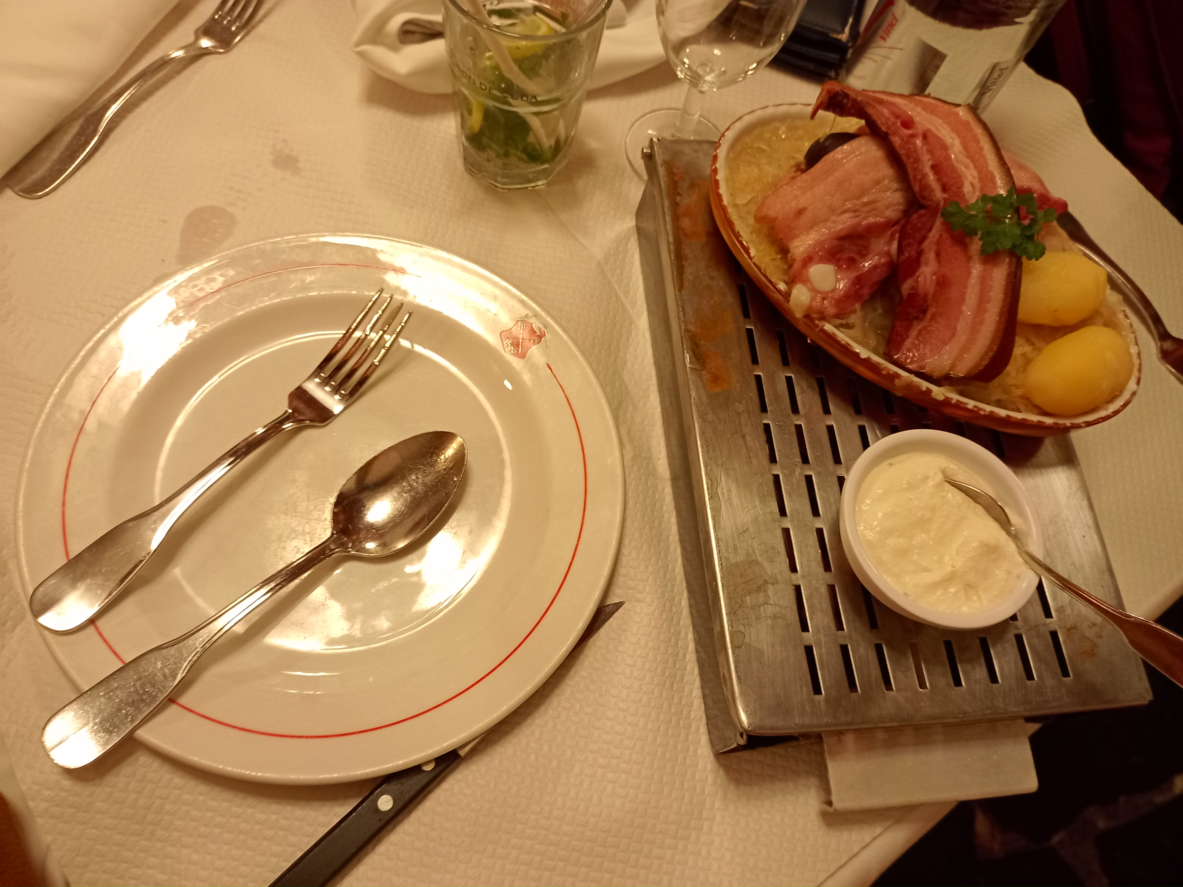 Verification du pass sanitaire à l'entrée, rien à dire, circonstances l'obligent. Personnel toujours aussi attentif, dynamique et serviable. Service sur mesure. J'ai commandé l'un des menus du jour et je me suis régalé, des escargots à la coupe taverne en passant par la choucroute faite maison, pur délice. À refaire et je recommande à 100%