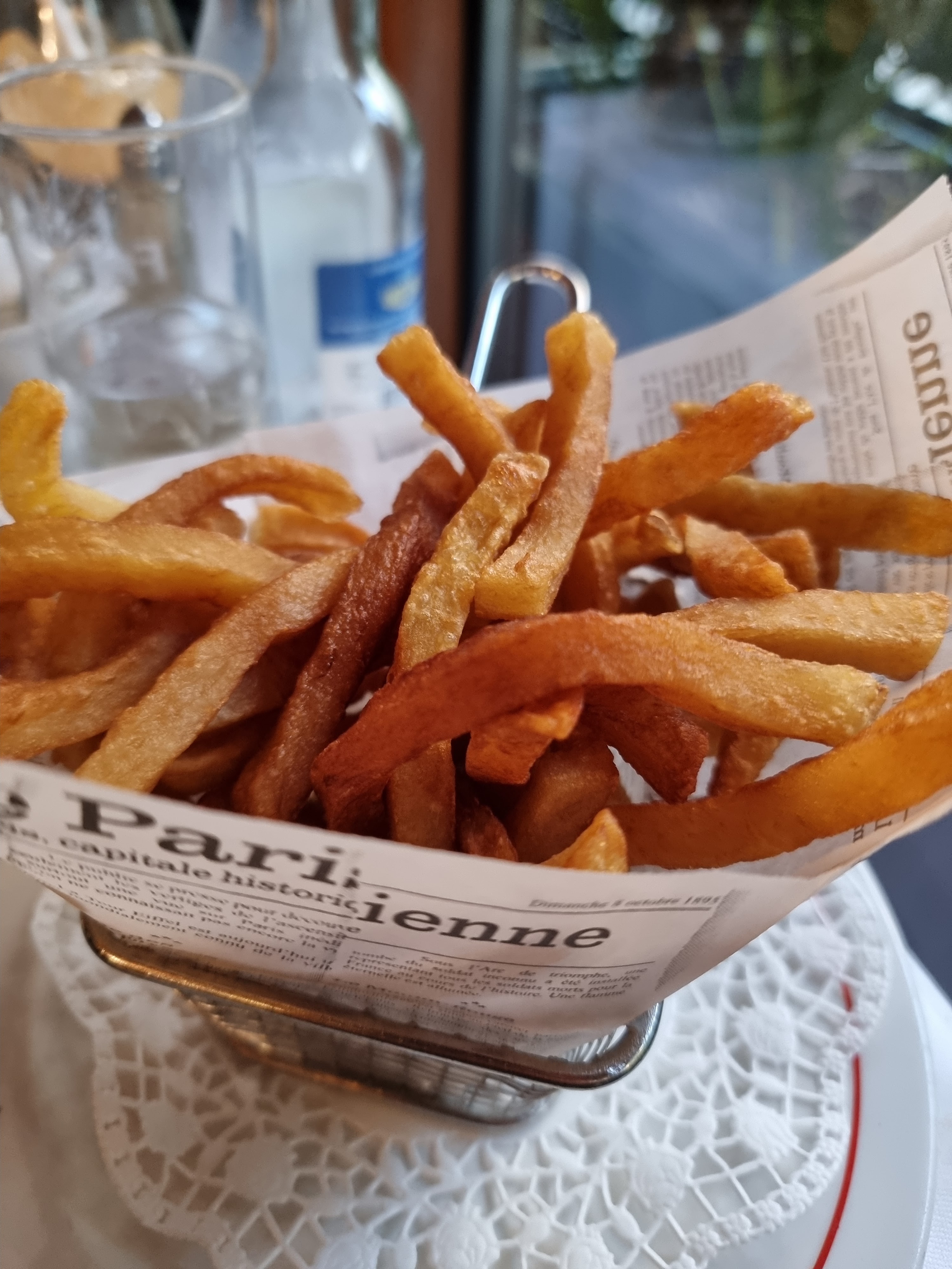 Pas de frites un vendredi soir. Choucroute paysanne semblant être un plat sous vide : boudin noir sans goût, et autres viande lisse et insipide. En revanche bonne sauce au raifort et bonnes profiteroles. En 3 passages toujours des plats qui ne sont pas à la hauteur Jamais ce problème au bistrot parisien.