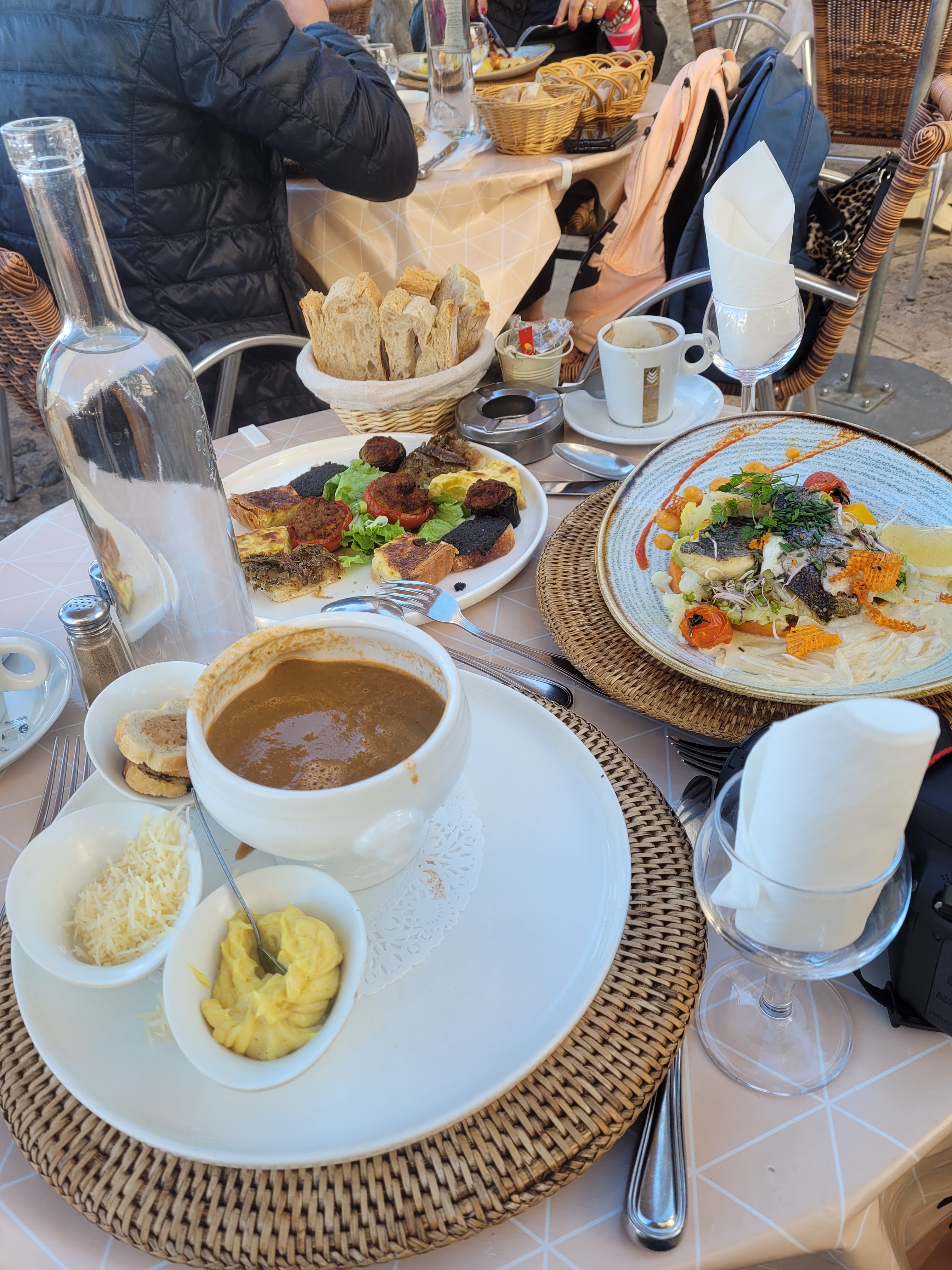 Quelle vue et quel cadre romantique dans une ville magique et historique. Nous avons été impressionnés par le service amical, les beaux vins locaux et les plats frais, notamment une salade niçoise traditionnelle et une planche de charcuterie.
