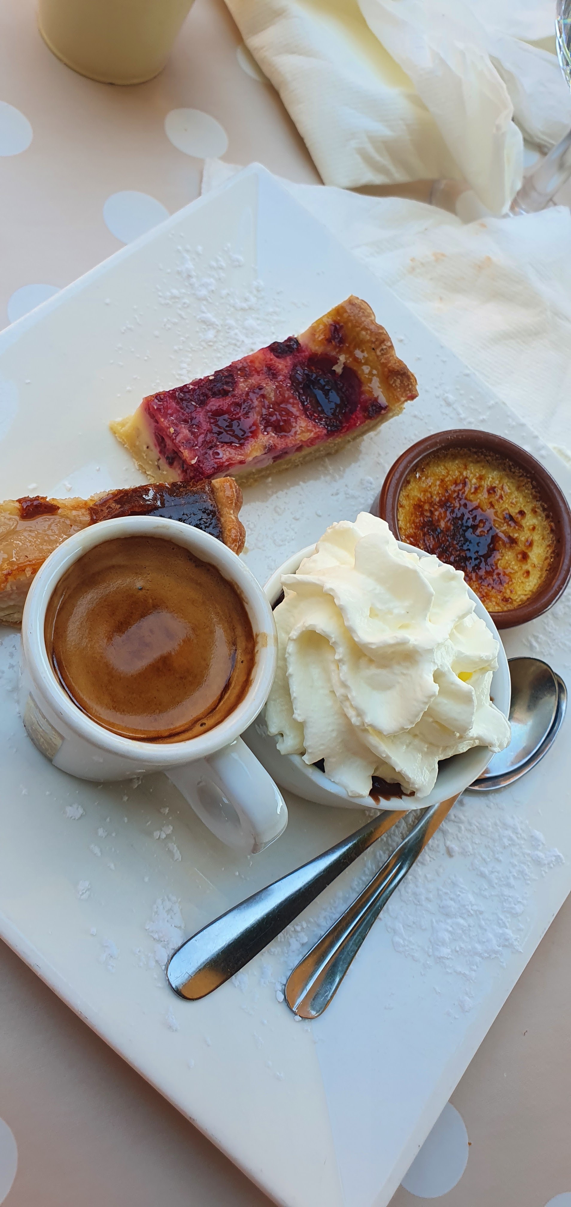 Emplacement magique avec une vue magnifique, service adorable mais cela ne fait pas tout. Les prix sont exorbitants pour la quantité et la qualité dans l´assiette. Une salade niçoise à 17€ avec 5 feuilles de salade, une tomate, un œuf dur, des croûtons immangeables, du thon en boîte et des anchois que nous avons dû réclamer car ils avaient été oubliés... les profiteroles en revanche sont très bonnes et copieuses. Dommage...