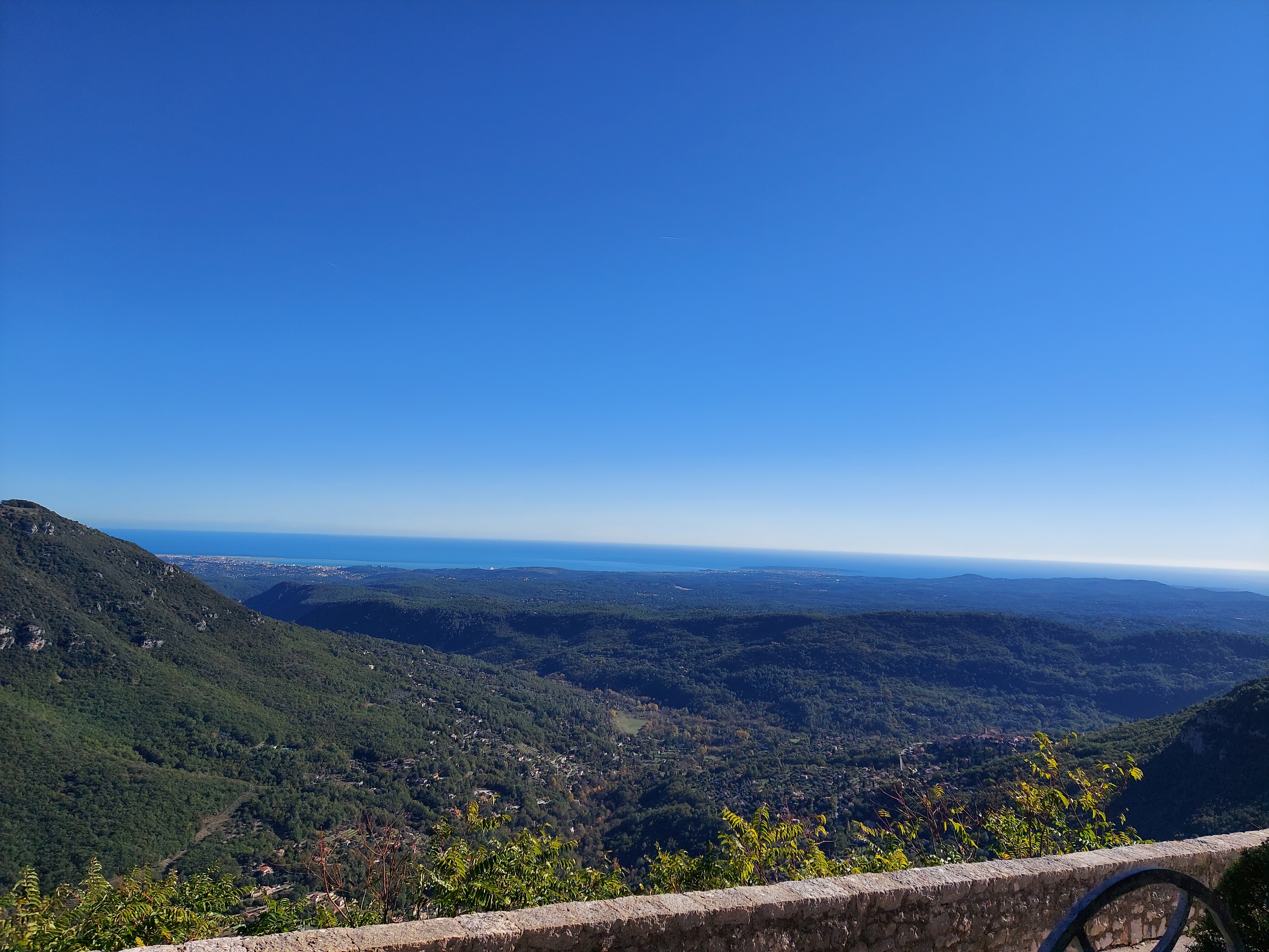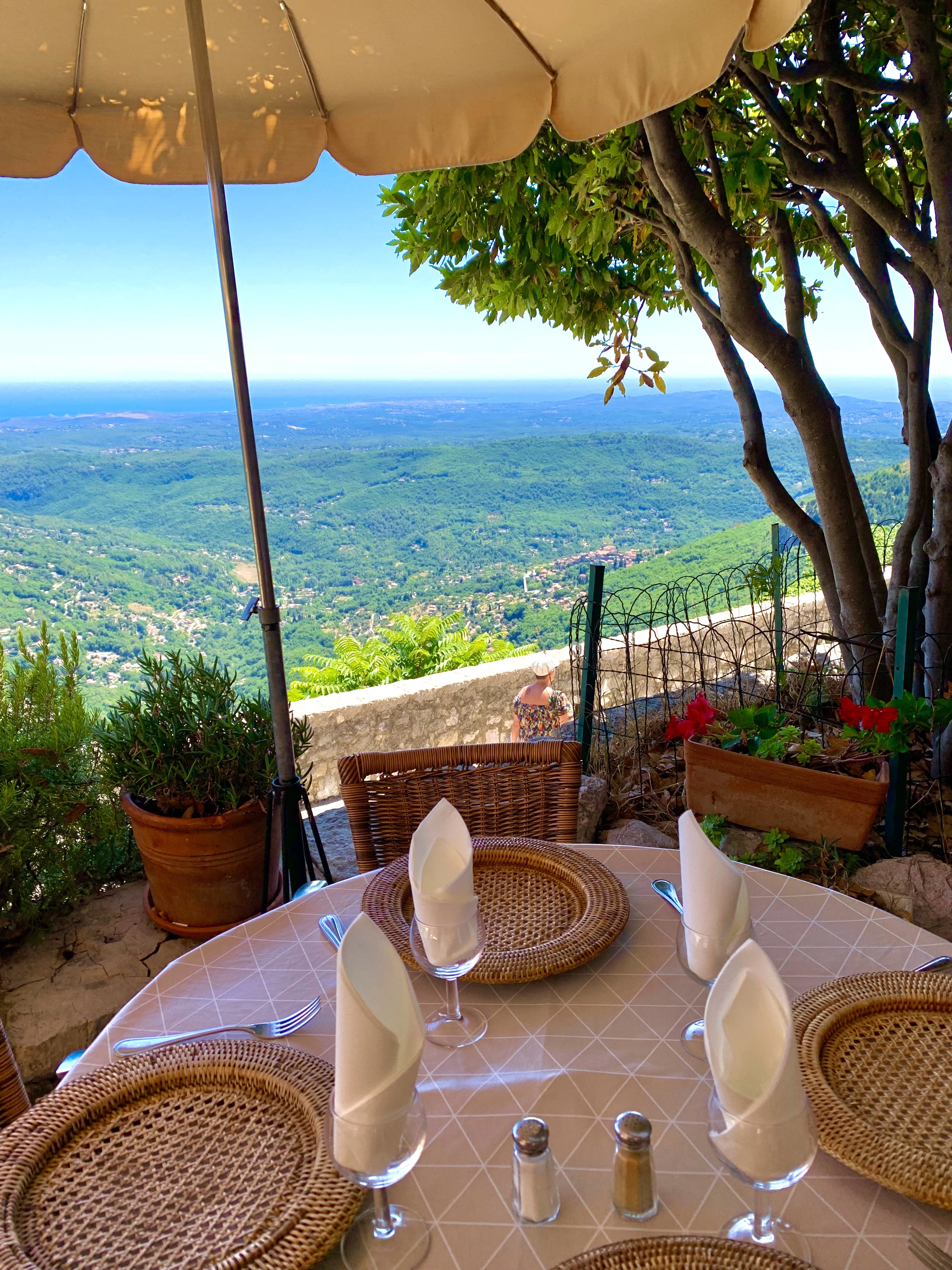 Vue absolument imprenable sur la vallée... par temps clair, vous pouvez voir de Cannes à Nice le long du littoral. Service excellent. La nourriture était délicieuse. Je recommande vivement la visite de la ville avec déjeuner à La Taverne !!!