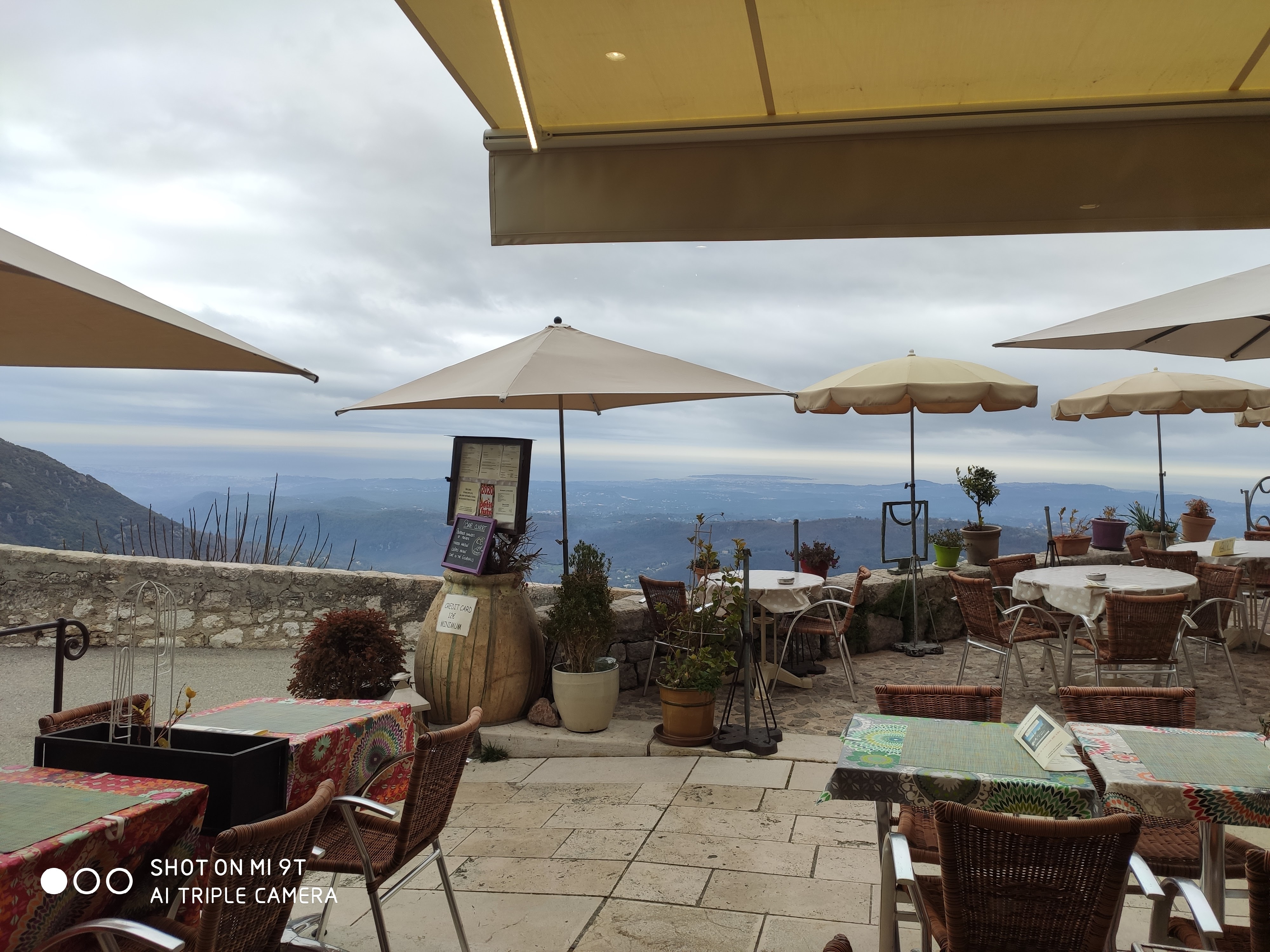 Bon resto avec vue panoramique sur toute la côte d azur...du monde mieux vaut réserver....apporter son pull du vent a 800m d altitude....