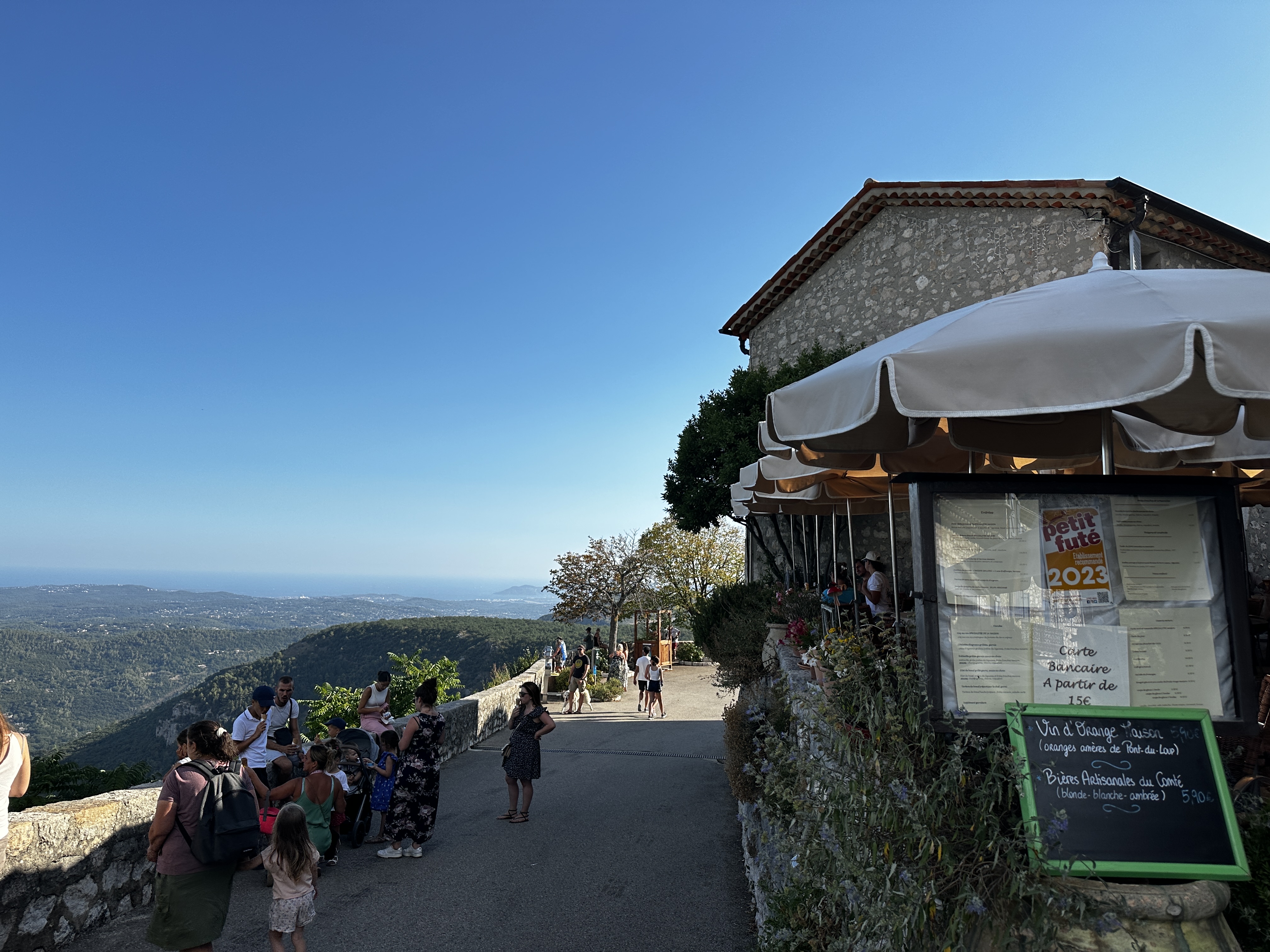 On vient ici pour la vue époustouflante sur la côte d'Azur. Bonne bière niçoise, la brasserie du Comté.