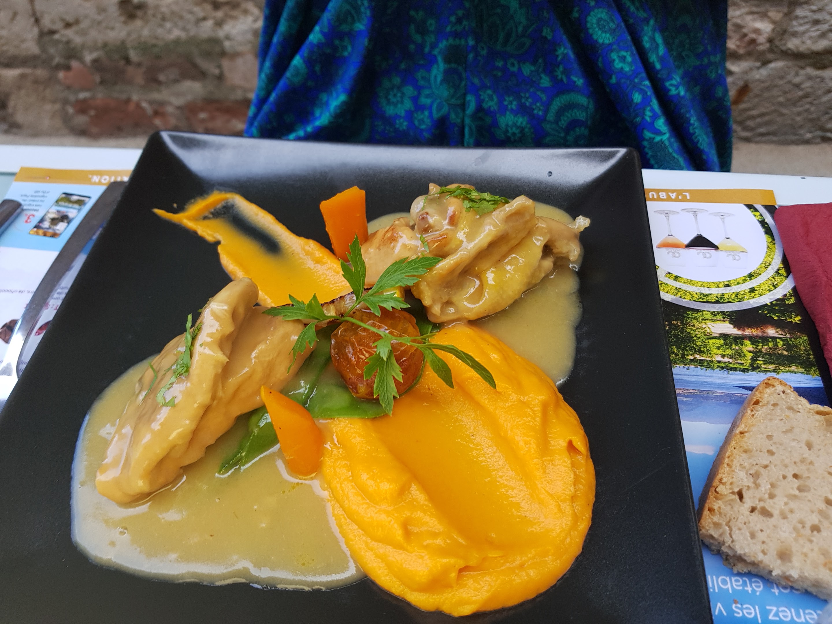 Le restaurant est situé dans.une petite ruelle tres sympa ! La prise de rdv et l'accueil se sont bien passé la personne était vraiment sympathique ! Pour la cuisine je n'ai rien à redire c'était très bon! Le service à été particulièrement long ce soir là ! Nous avons attendu 1h pour avoir le dessert après terminé le plat principal sans compter les personnes très bruyantes à la table d'à côté qui visiblement ne savaient pas parler sans hurler et merci pour les flatulences de leur chien collé à notre table ! Bref je recommande néanmoins ce restaurant peut être n'avons pas eu de chance ce soir là.