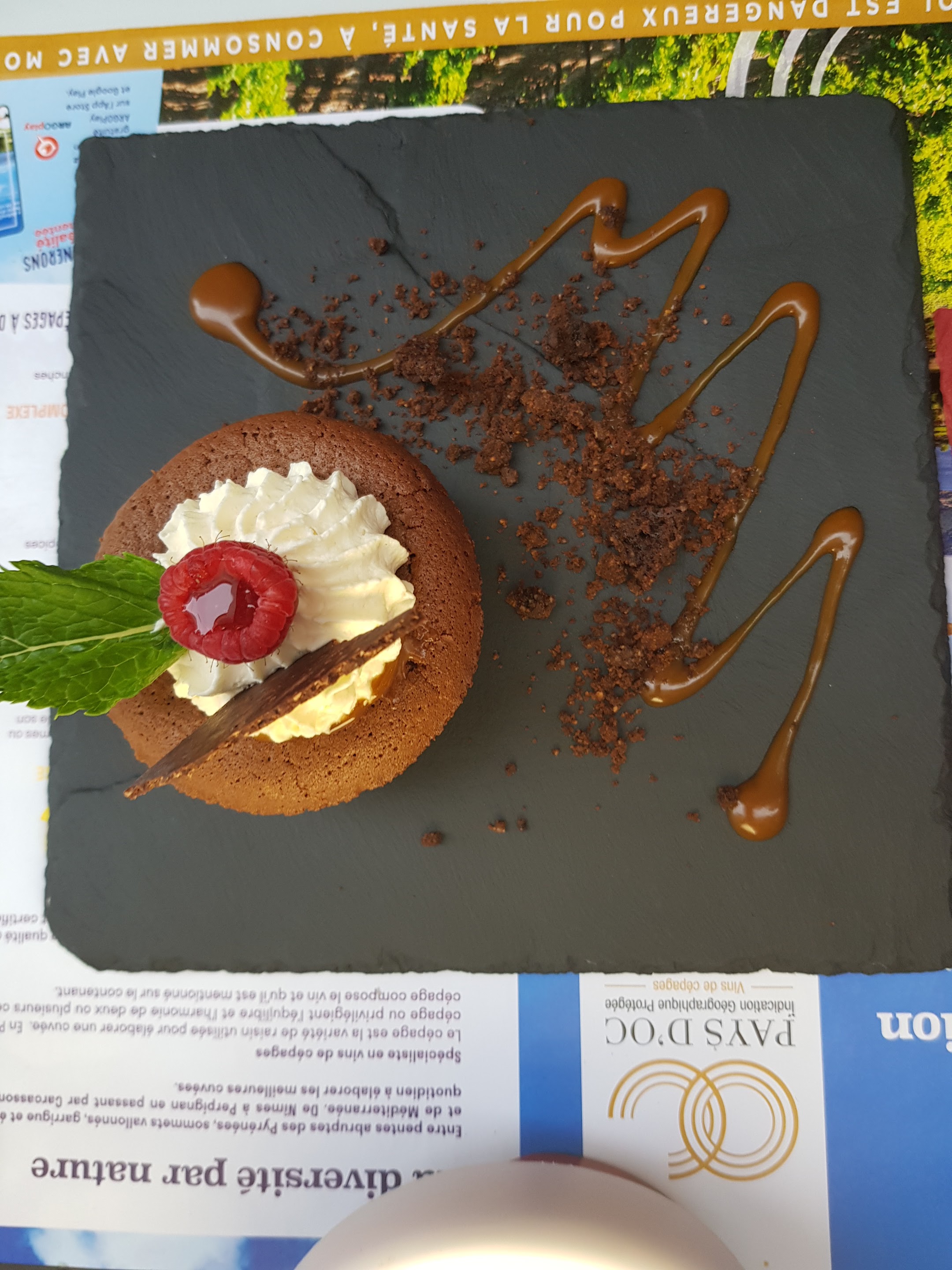 13h15 ce samedi,après la réunion des nouveaux arrivants d'Anduze,je m'offre un resto..devinez où ???à la Taverne !!!j'ai dégusté la tarte fine façon cevenole,pure création du chef et de sa muse!!!2 mots:un régal !!!venez !!venez!!!vous ne serez pas déçus. Je termine par les profiteroles du chef..Un régal pour les yeux et les papilles !