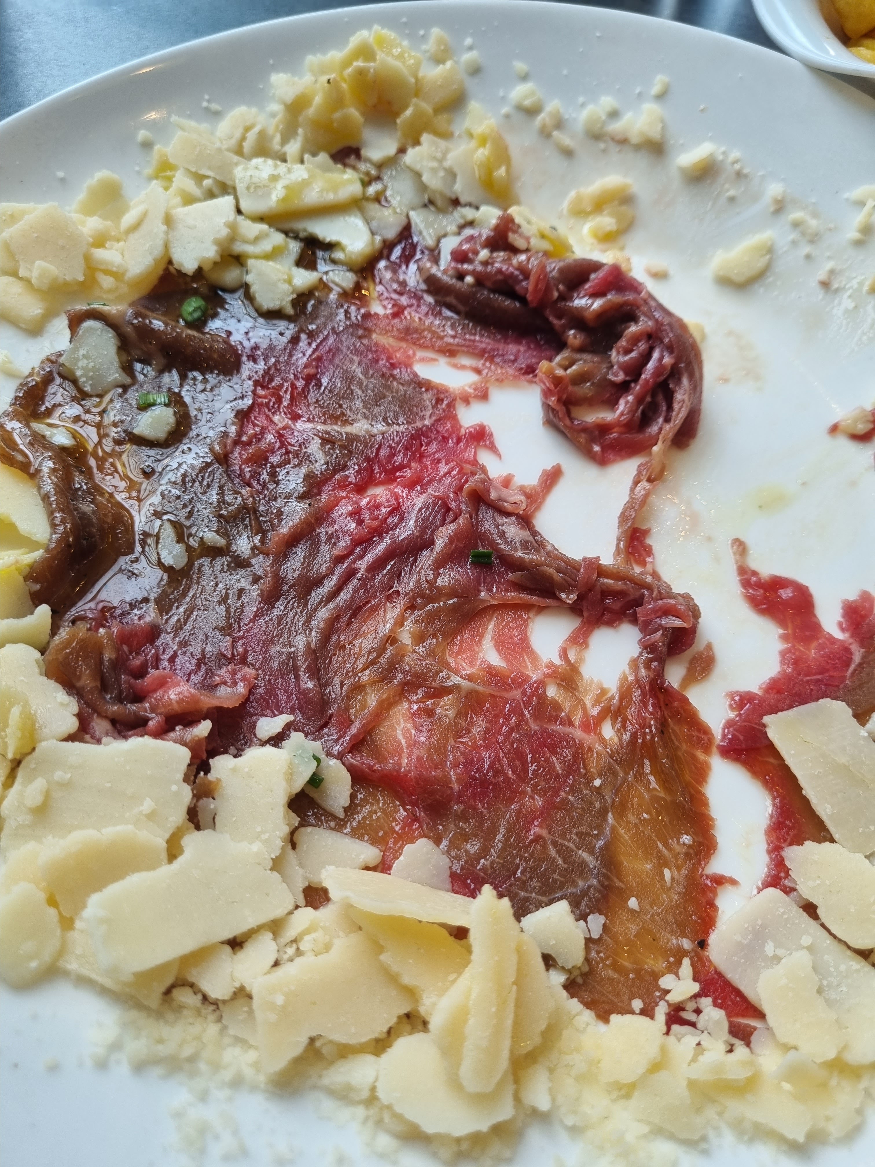 Inimaginable de manger une viande soi-disant crue mais totalement cuite. J'espère ne pas faire une intoxication alimentaire. Je ne sais pas qui ose servir des tranches de carpaccio totalement en charpie et qui ont la couleur d'une algue. Les photos parlent d'elles-mêmes. PRÉCISION SUITE A LA REPONSE DU GÉRANT DE L ÉTABLISSEMENT : J EN AI FAIT ETAT AU SERVEUR ET A LA DAME EN CAISSE, MA REMARQUE N'AVAIT PAS L'AIR DE LES INTERROGER. NON BIENSUR QU APRES AVOIR MANGÉ LA PREMIERE TRANCHE QUI CACHAIT TOUT LE RESTE, J AI TENTÉ EN VAIN DE TROUVER UN MORCEAU DE BOEUF NON AVARIÉ . JE ME SUIS RABBATTUE SUR QUELQUES FRITES. L AVIS A ETE POSTÉ EN SORTANT DE VOTRE ÉTABLISSEMENT, ET C EST TOUT A FAIT NORMAL CAR AUCUN DE VOS COLLABORATEURS N'A VOULU ÉCOUTER MA REMARQUE.