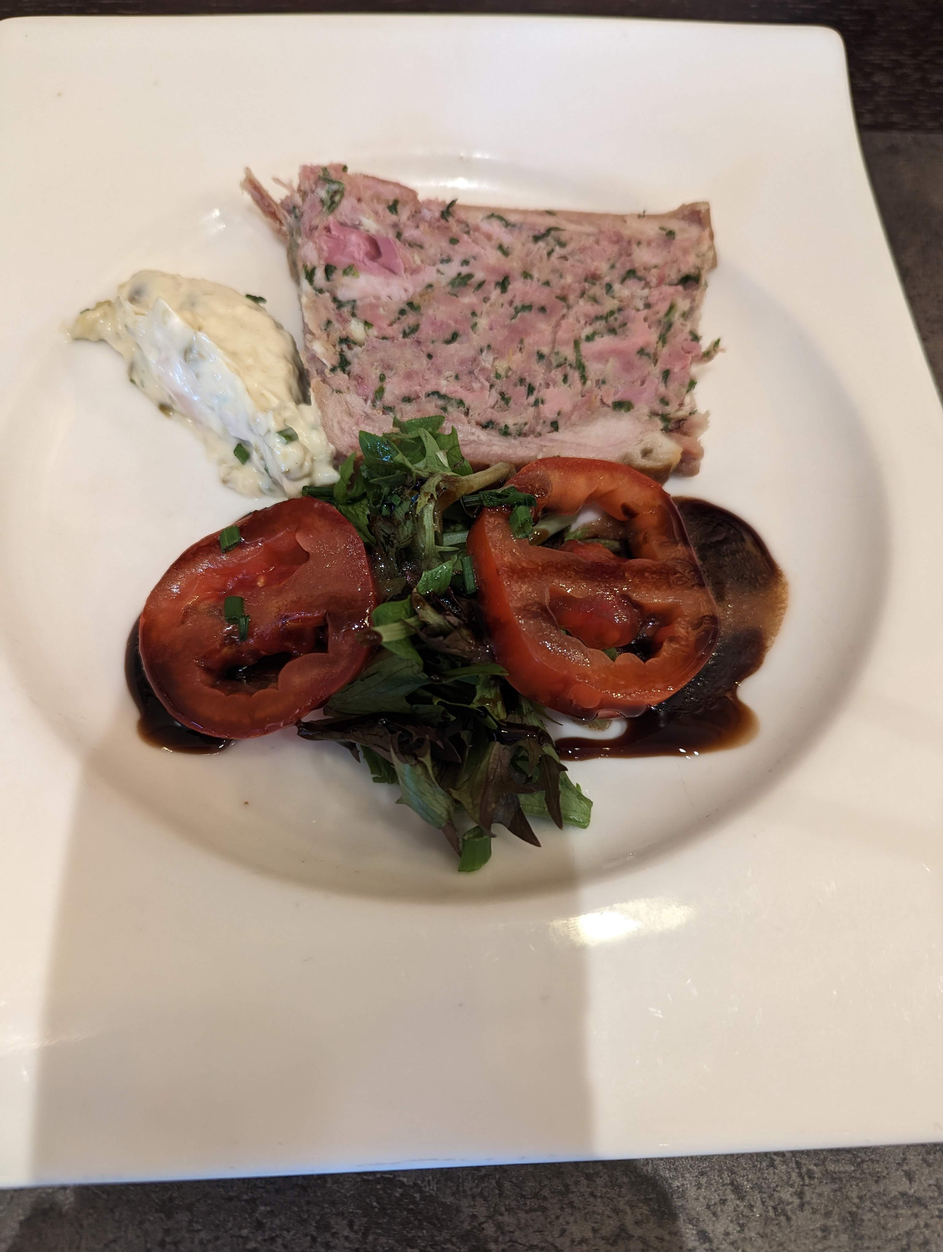 Salade Périgourdine. Elle est vraiment très bonne. Le foie gras est excellent. Le magret de canard bon. J’émets un doute sur le gésier qui ne me semble pas fait maison mais plutôt du genre industriel. En bref ce plat est bon. 16,90€. Je reviendrai pour le foie gras.