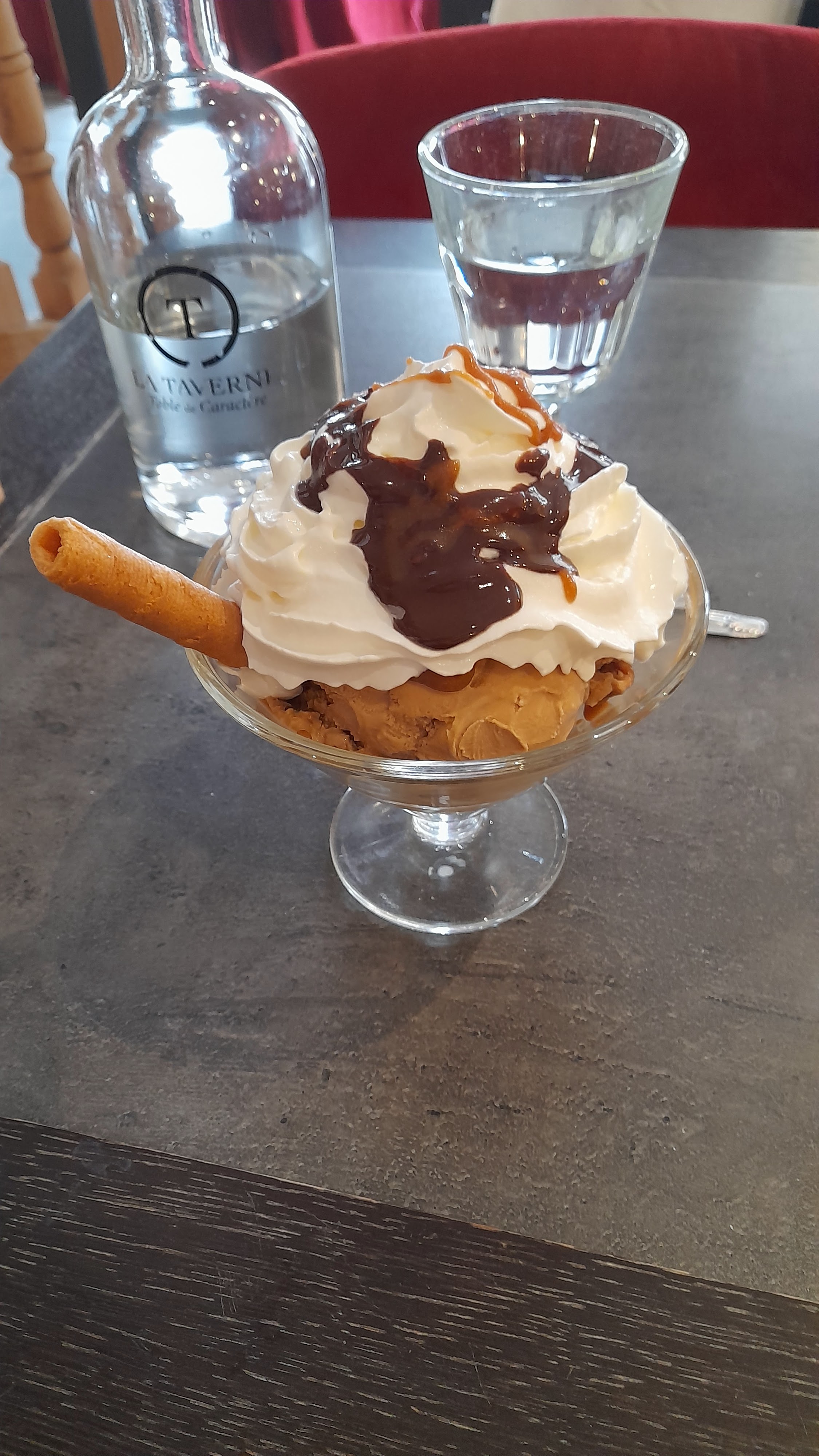 Le personnel est très agréable et accueillant. Nous avons été déçus par la choucroute de la mer. Le plat était bon mais trop peu de poisson dans l’assiette. Les glaces sont, quant à elles copieuses.