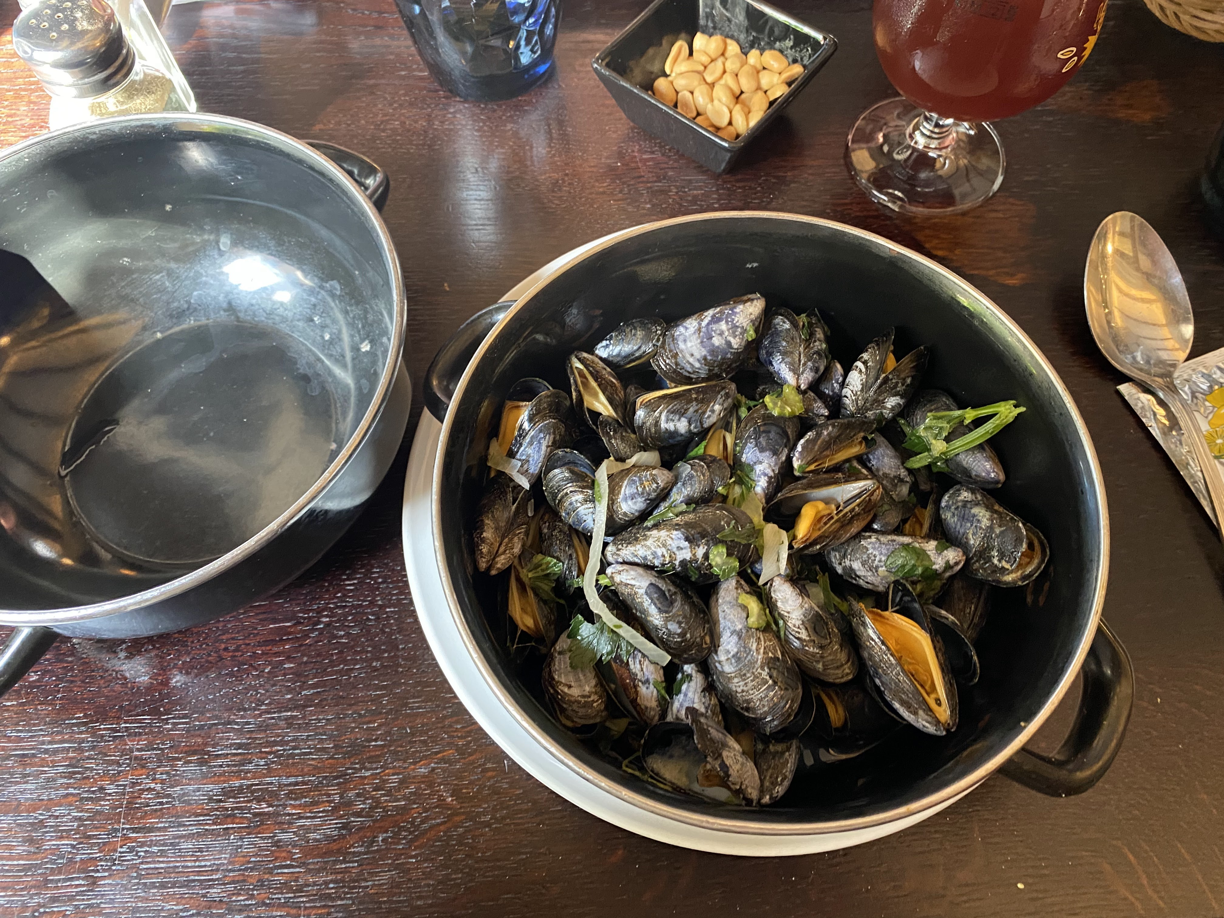 Nous sommes servit assez rapidement (contrairement à un couple arrivé en même temps que nous qui eux, on reçu leur commande quand nous avions déjà finis..) La moitié des moules étaient remplies de sable et quand je leur en fait part on me sort « ah bah c’est pas la saison » Le rapport ? La moitié des moules n’étaient pas très bonnes (petites, vides) crème pas folle un peu fade On avait encore faim à la fin.. Boissons servies pendant le repas Une organisation et une cuisine vraiment pas à la hauteur des 21€ pour 1 plat