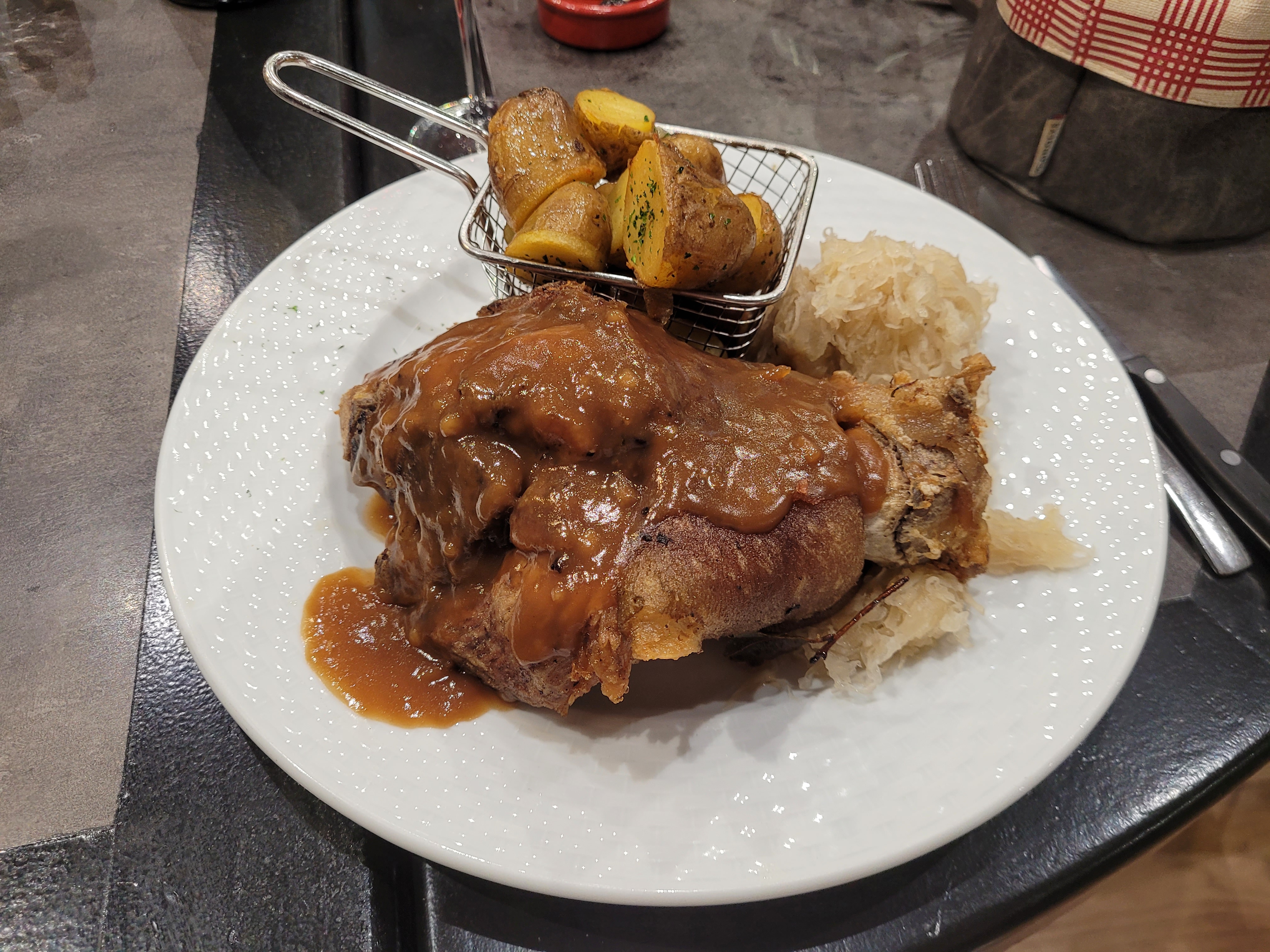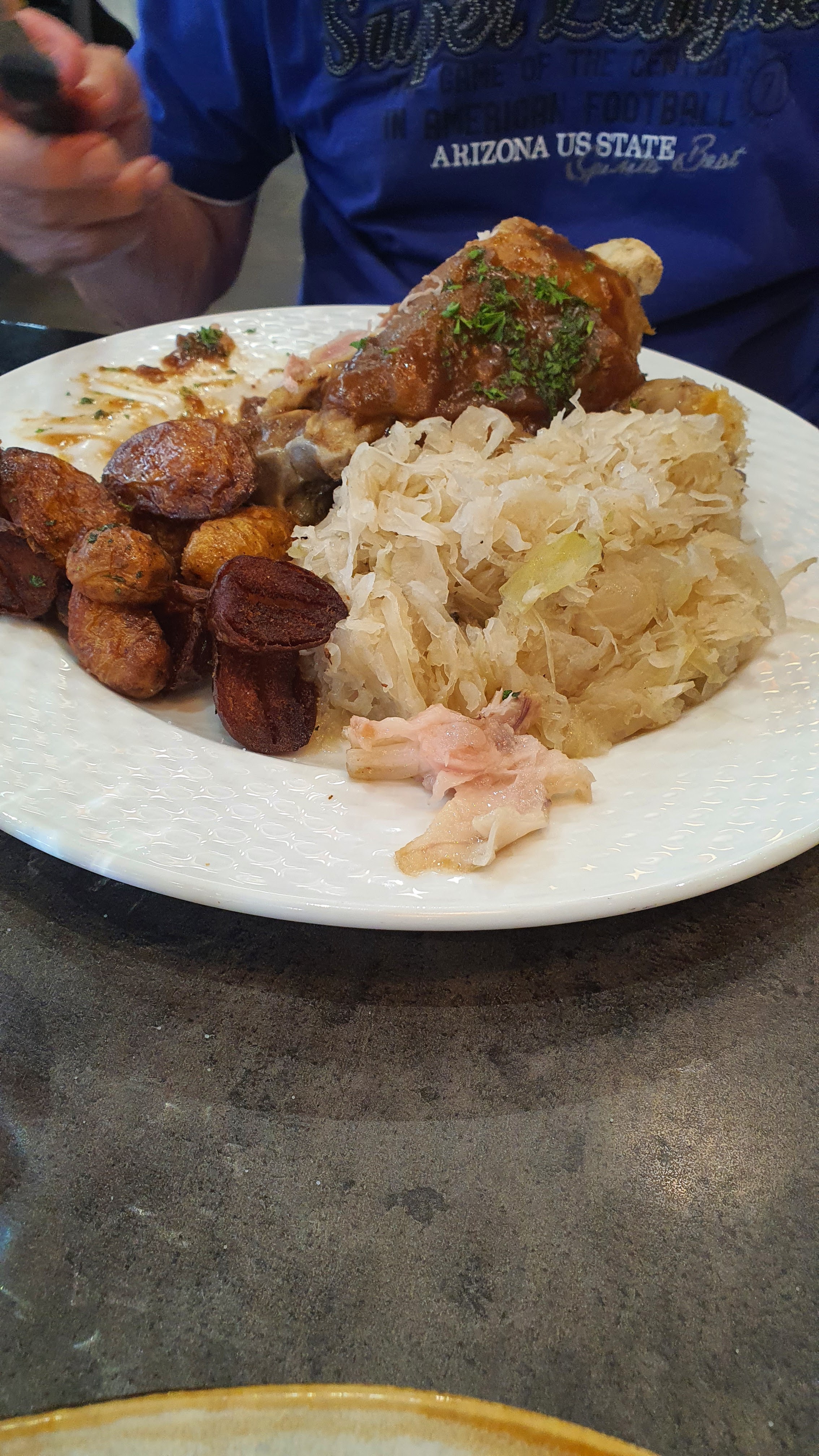 Ptit repas avec collègues de mon épouse....nous avions une salle à notre disposition.... accueil et service sympa....une variété de plats assez impressionnante.....les assiettes sont généreuses.....nous avons pris une choucroute pour 2 et nous n avons pas pu tout finir ( le jarret est énorme)....tout à fait dans l esprit taverne.....