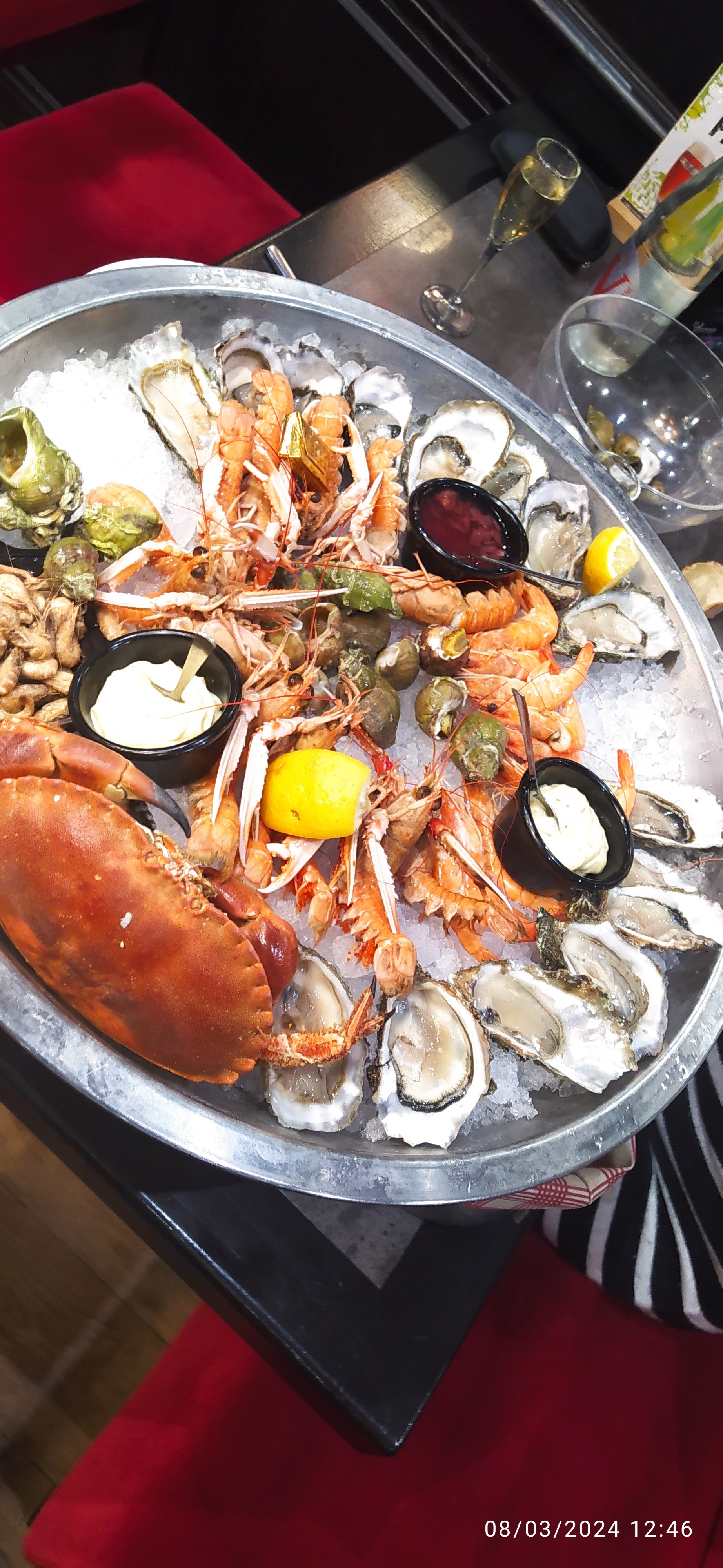 Huuum très chouette journée. Bon accueil, personnel très sympathique, aimable et professionnel. Bonne présentation, cuisine très bien faite. Après une bonne entrée, n'oubliez surtout pas de prendre un bon vin pour accompagner vos plats. Ma folie et mon bonheur était le plateau de fruits de mer (La Royale) avec un bon vin pétillant. Et pour boucler la boucle, un bon café gourmand, un vrai délice ! Réservez votre place pour gagner une place Vip. N'hésitez pas à y aller, c'est top de top. Pour moi c'est déjà imprimé À refaire !