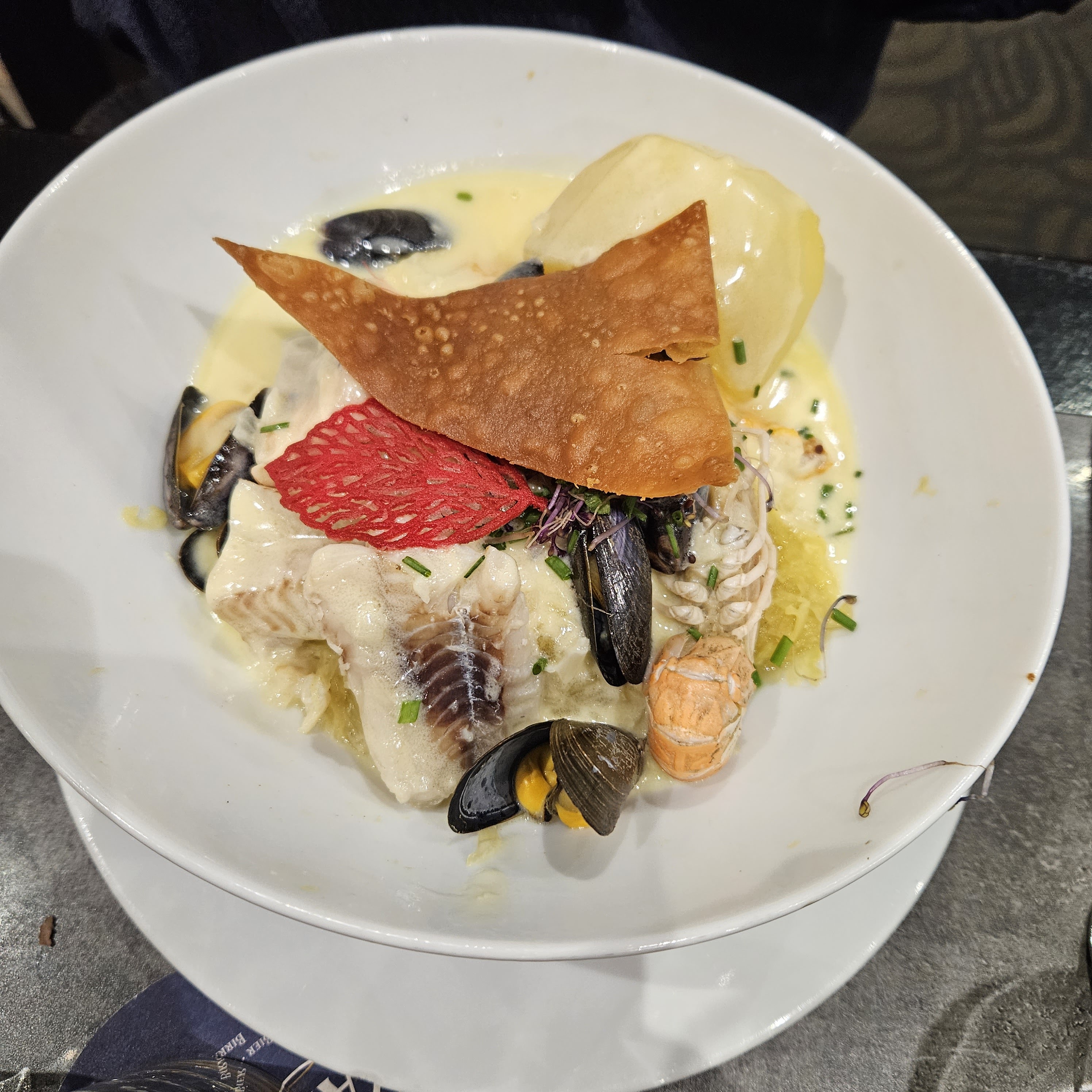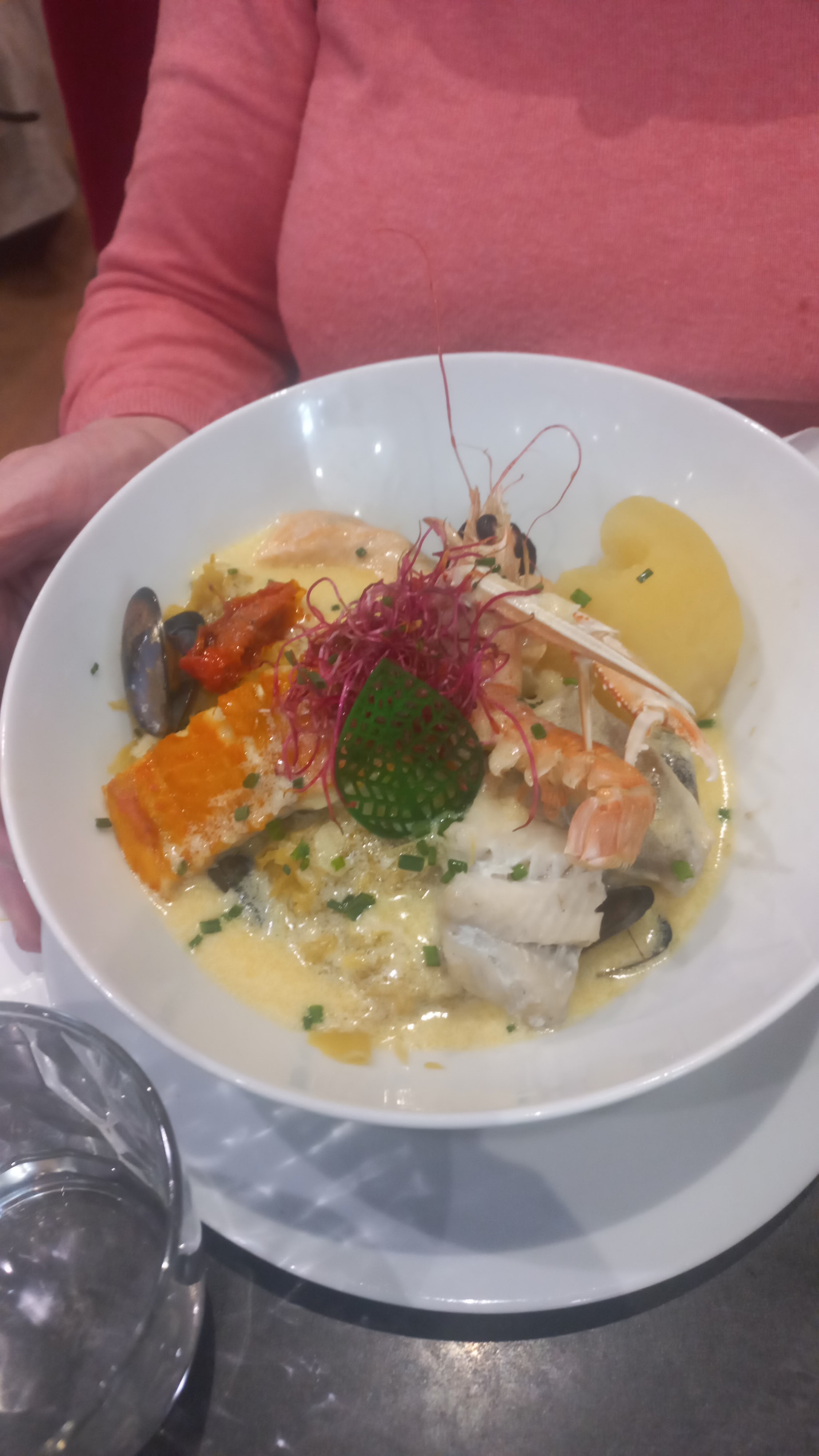 Passage sans résa un vendredi soir 19h qui est passé sans souci... Par contre Une personne pas très à l écoute de vos souhaits choix de lieu et de table.... Choucroute de la mer très cuite pas de goût 3 petites moules perdues 1 langoustine chair racornie frites bien trop cuites ... C était mieux en décembre dernier... Encouragements pour améliorations......