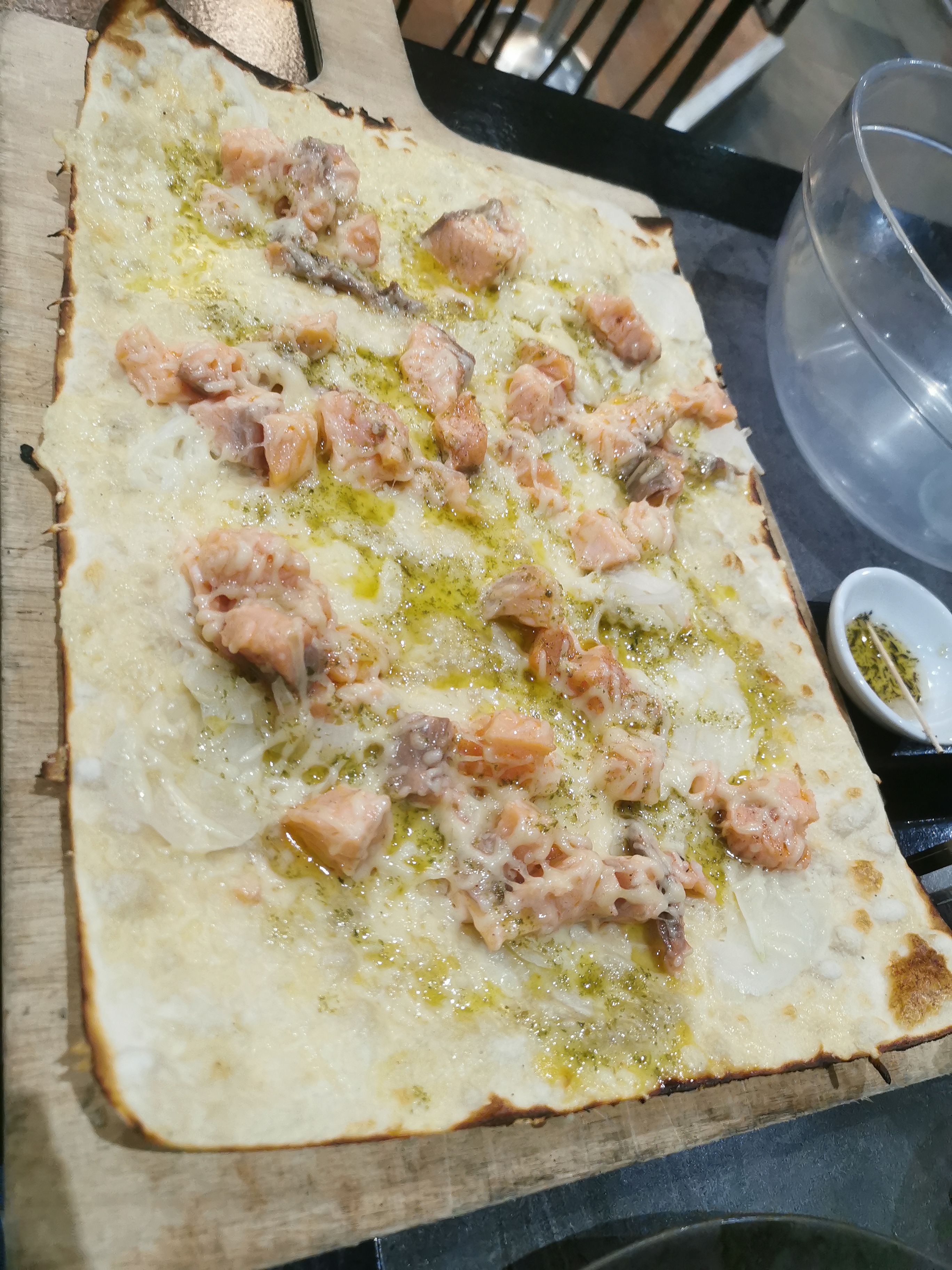 Tarte flambée sans appareil jamais vu en 10 ans de restauration de surcroît pour un restaurant alsacien Font de pâte lardons et oignons pour 13 euro 😡
