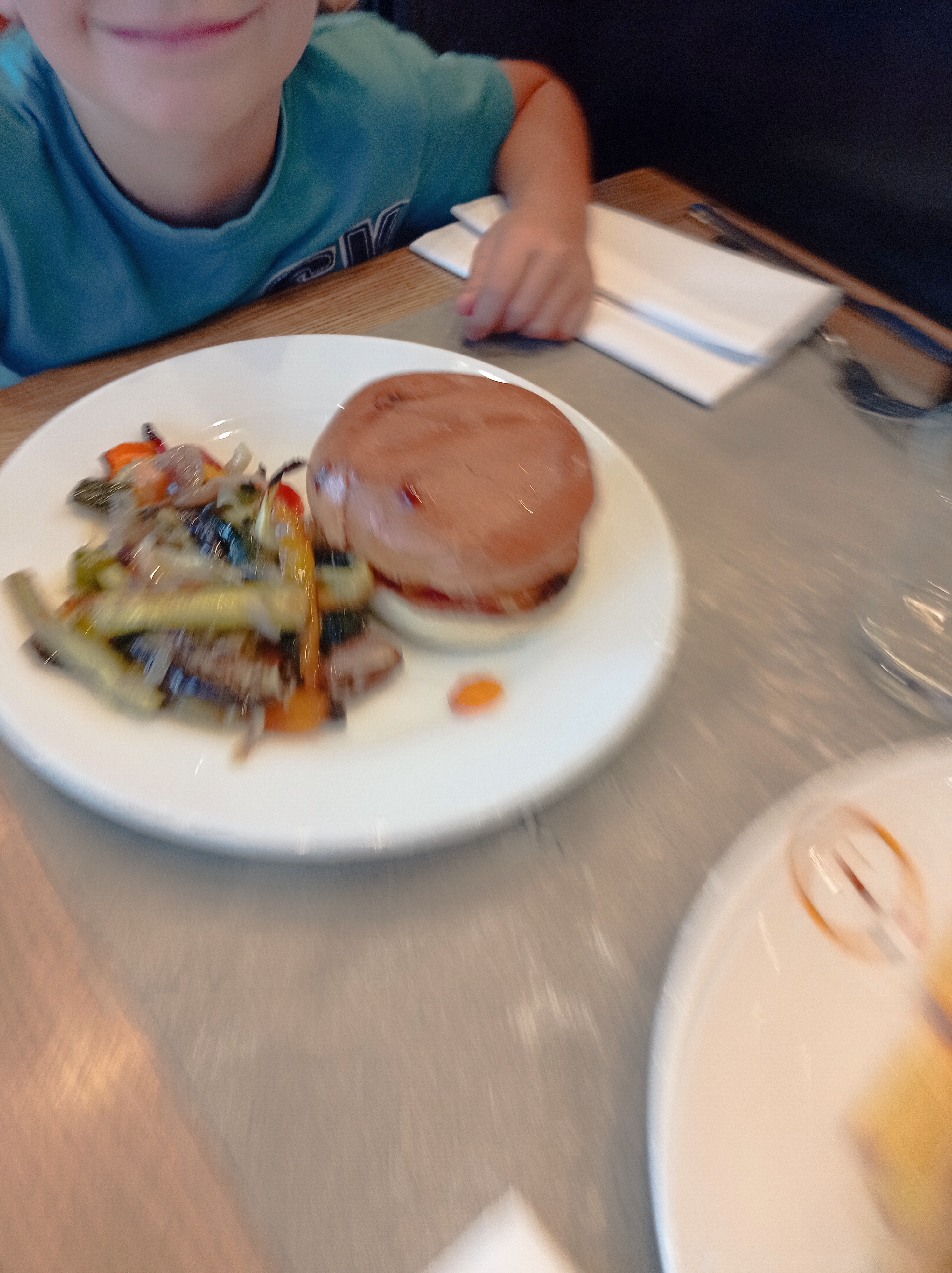 Bjr, dans l’ensemble pas trop mal, mais 2 reproches, le premier concerne l’arrivée des plats, qui ne sont pas mis en table pour nous 8 en même temps, 4 premiers plats servis, ensuite environ 5 minutes après, 3 plats servis et encore 5 minutes après le dernier plat cela est désagréable car, il n’est pas possible pour nous de ne pas consommer tous ensemble, de ce fait, nous attendons le dernier plat pour consommer et les premiers sont consommer plus très chaud, dommage, le second problème est pour l’enfant de 2 ans, avec le menu enfant on lui amène son dessert, une pomme, tout simplement sur une assiette et devoir la couper et l’éplucher avec un couteau absolument pas adapté n’est pas normal, il serait judicieux de l’éplucher et la couper en cuisine avec un couteau approprié. Voilà, avec un peu d’amélioration, pas très difficile à mettre en place, nous aurions passé un meilleur moment. Merci.