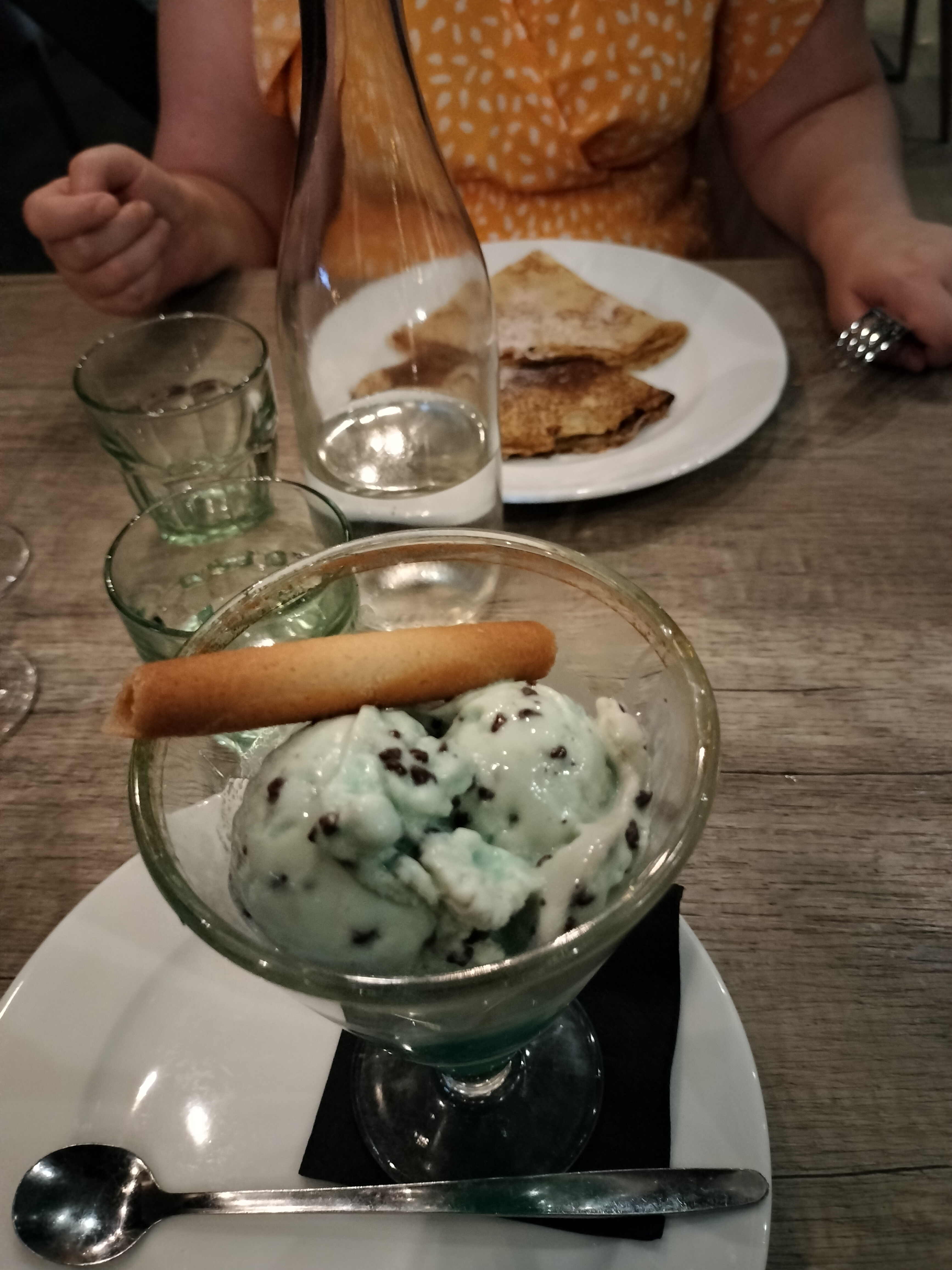 Pas trop d'attente, mais un peu pressés pas le serveur pour prendre les commandes, ensuite un peu d'attente... Le lieu est vraiment sympa et service correct pour un dimanche soir. Au dessert L'île flottante est vraiment énorme (trop même😂) prix justifié