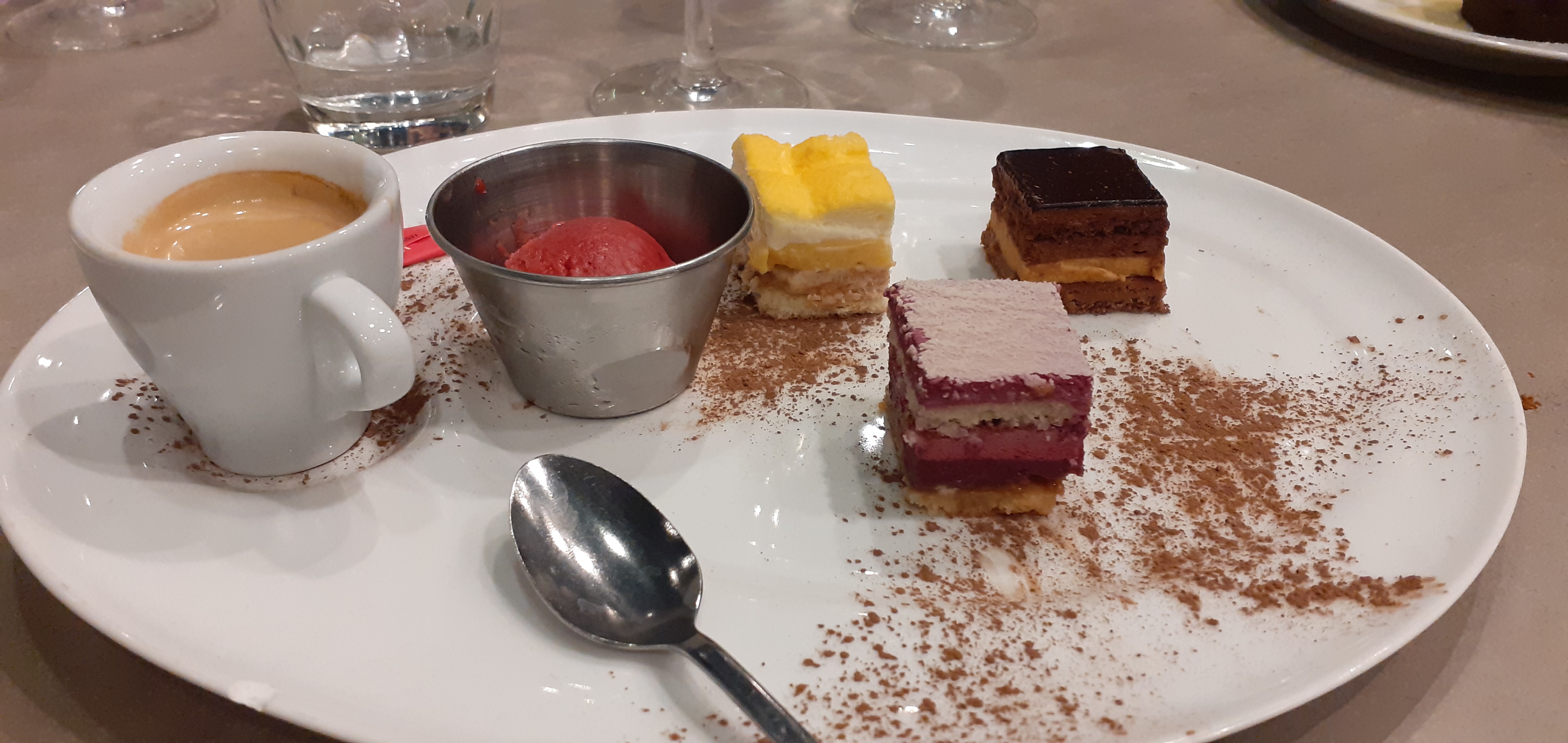 Dernier repas pris un samedi soir. A 21h30 plus de profiteroles. Plus de mousse au chocolat. Pris un riz au lait vraiment très mauvais. Les plats des autres convives étaient également très moyens. Dommage car habituellement c’était meilleur.