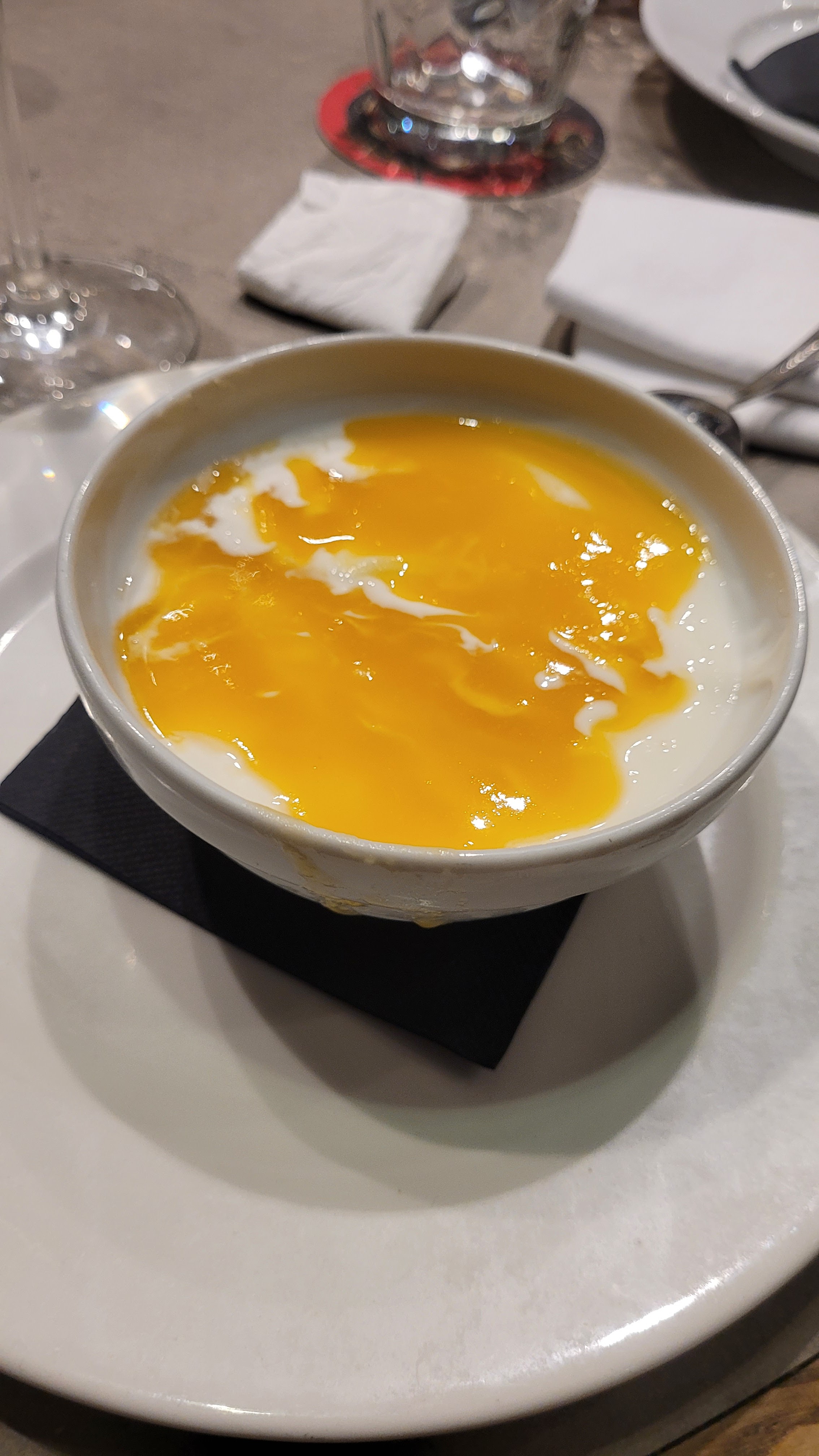 Une fin de menu de Noël agréable et très douce Une équipes toujours à l écoute souriantes et agréablement servi Un menu a la hauteur du restaurant . Quelques soient la saisons un menu surprenant . Un restaurant toujours bondé quelques l'heure. Un maître cuisinier qui fait d'excellents plats avec des produits frais