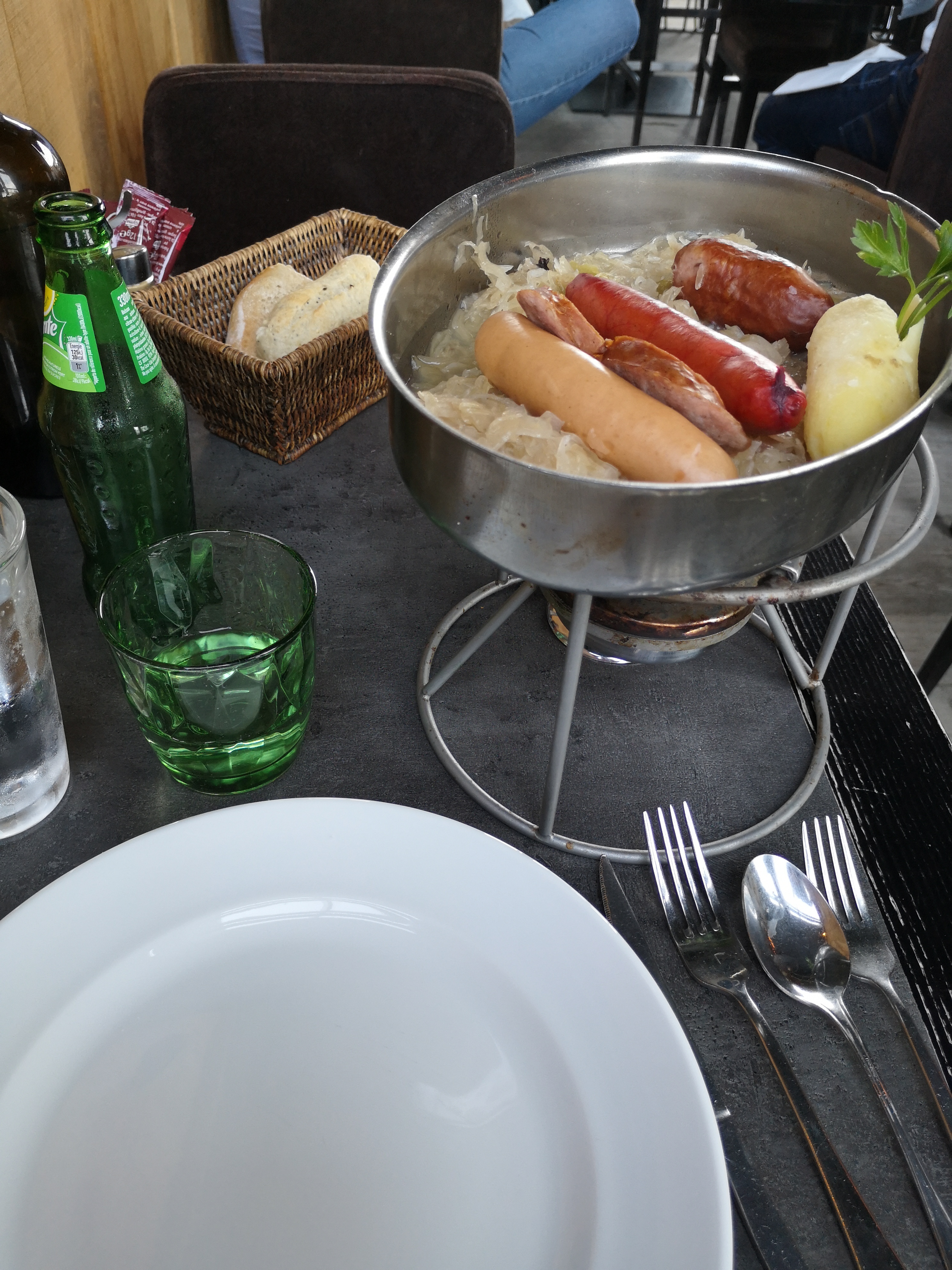Choucroute médiocre choux chaud mais saucisse pomme de terre froide très déçu je n'y retournerais pas serveur agréable