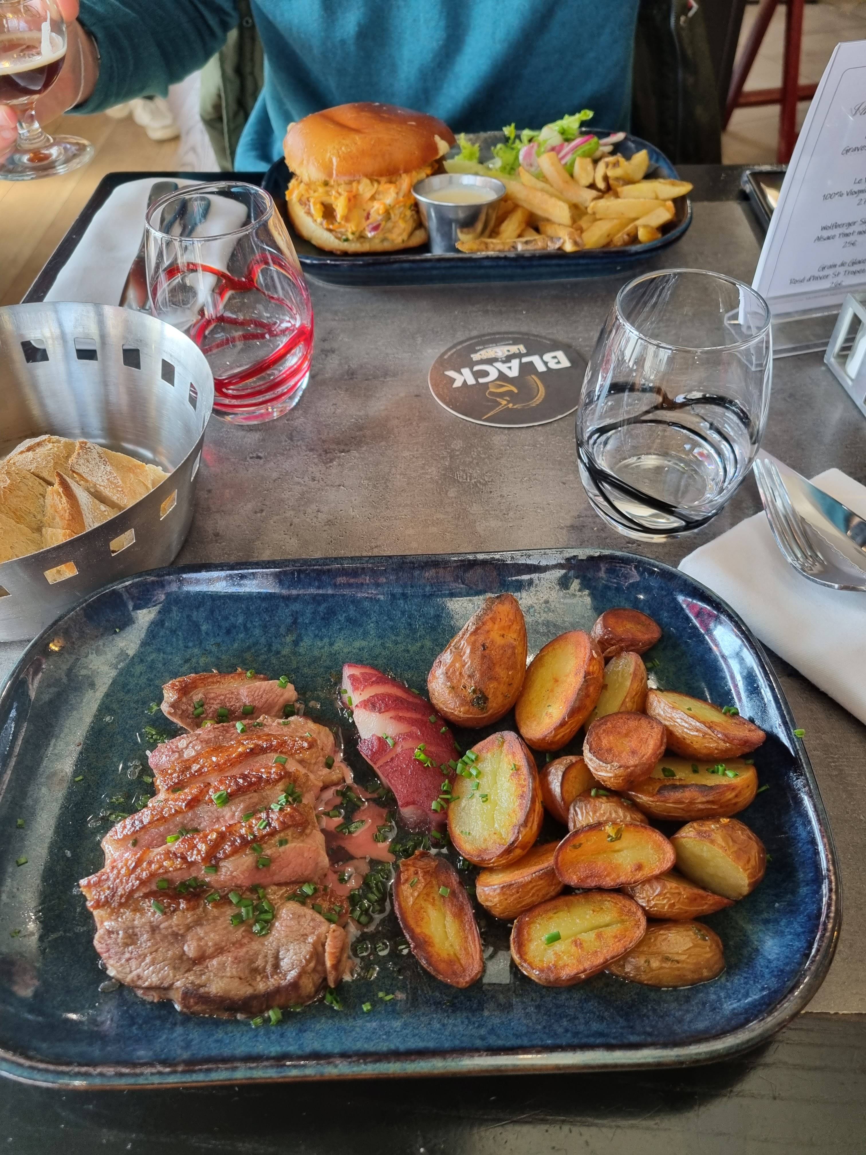 Nous avons été très bien accueillis. Burger délicieux !! Les assiettes sont copieux. (Surtout les desserts !) (Je mets pas 5 étoiles parce que le jarret ne fait pas vraiment 1kg de viande. Au moins la moitié du poids c’est que l’os 😅)