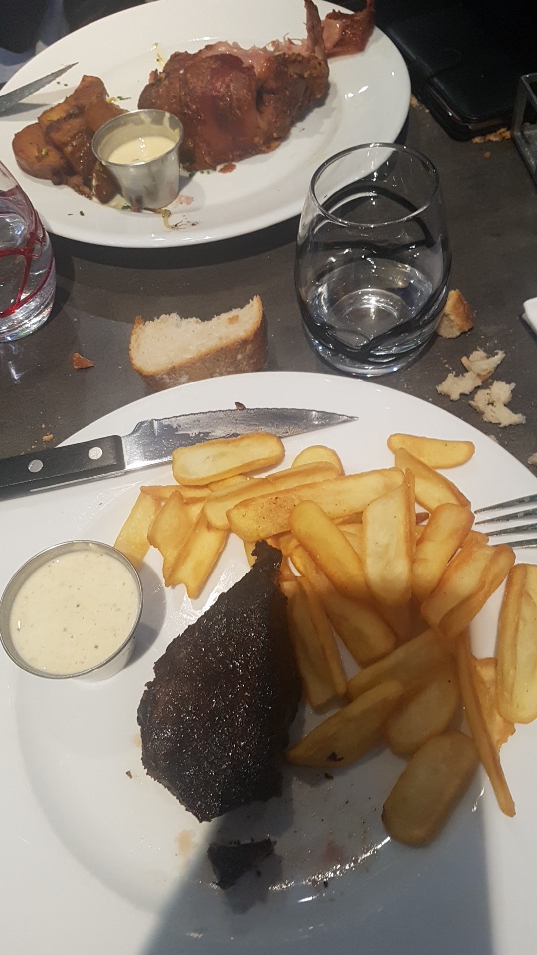 Et bien, jai été globalement déçu. Frittes surgelé, pomme de terre qui baigne dans l'huile sans avoir le goût de l'ail (dommage pour des pommes grenailles à l'ail et au persil) sauce industrielle, déco grossière, pâte trop cuite et trop grasses. Viande correct. Le serveur etais néanmoins sympathique.
