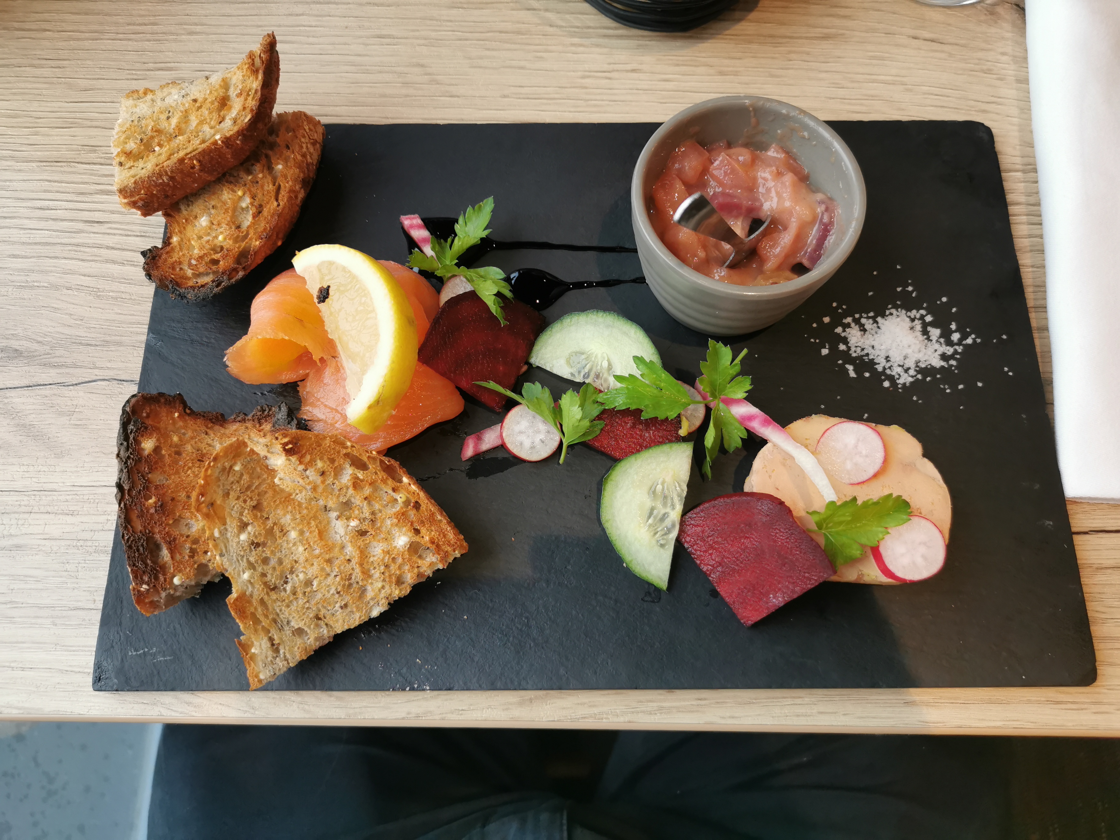Assiette de salade jolie m très peu de fois gras. Eaux robinet imbuvable. Des erreurs dans la commande. Personnelle débordé trop attendue avant être servi 1h montre en mains avant d' avoir apéritif .visiblement débordée par le succès de leur ouverture. Et ses dommages d'avoir du pain 🍞 industriels alors qu'il ya une très bonne boulangerie a côté( bonne continuation )